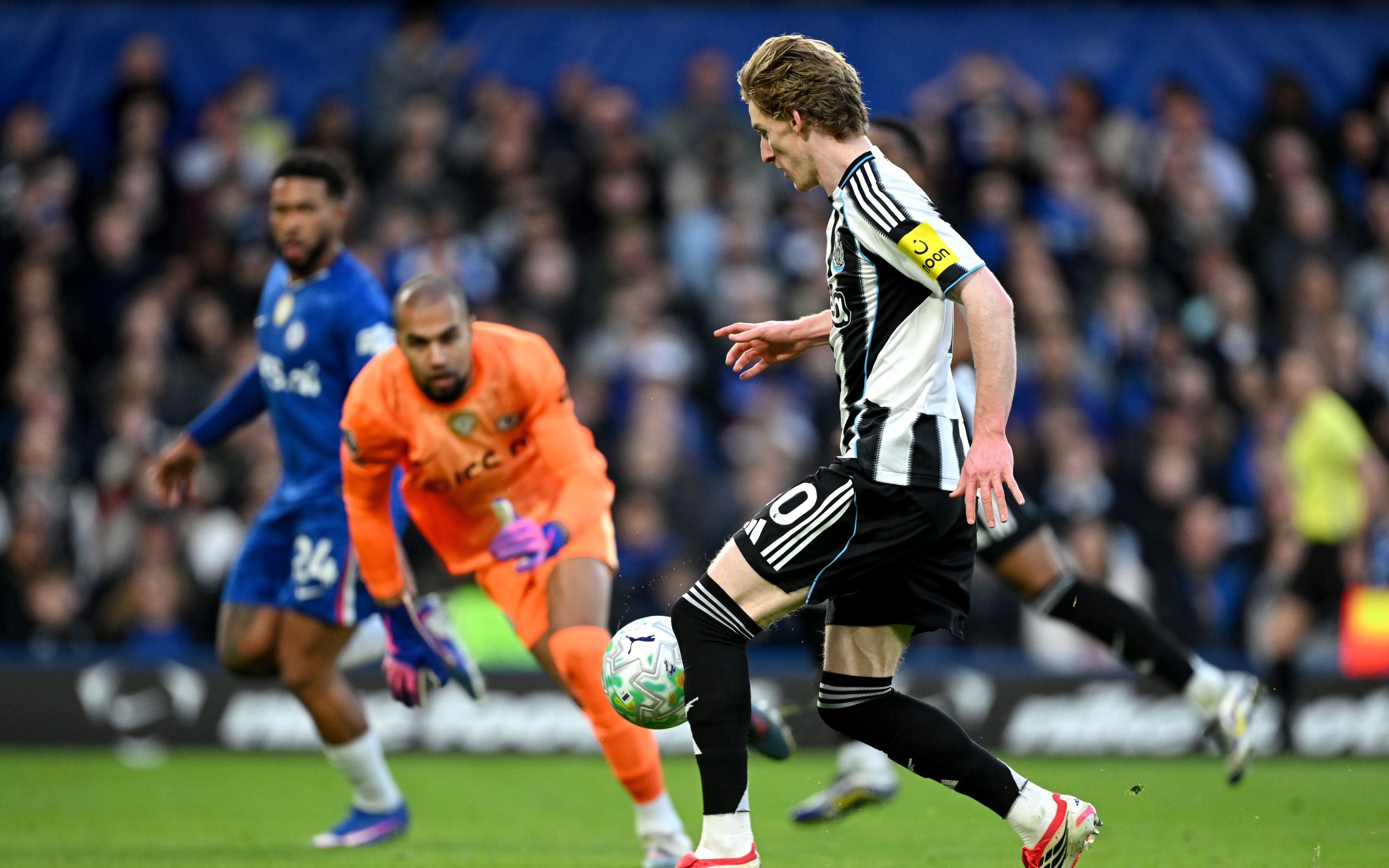 แต่แล้ว นิวคาสเซิ่ล ฉวยโอกาสเอาประตูนำไปก่อนเมื่อ ลิฟราเมนโต้ ขยับพาบอลมากลางสนามก่อนเห็นรูเบ้อเร้อในแนวรับ เชลซี เลยแทงให้ วิลล็อค หลุดพาบอลเข้าเขตโทษก่อนจ่ายให้ กอร์ดอน วิ่งประคองมาว่างๆซ้ายมือจับแล้วยิงเข้าประตู นิวคาสเซิ่ล นำ 1-0