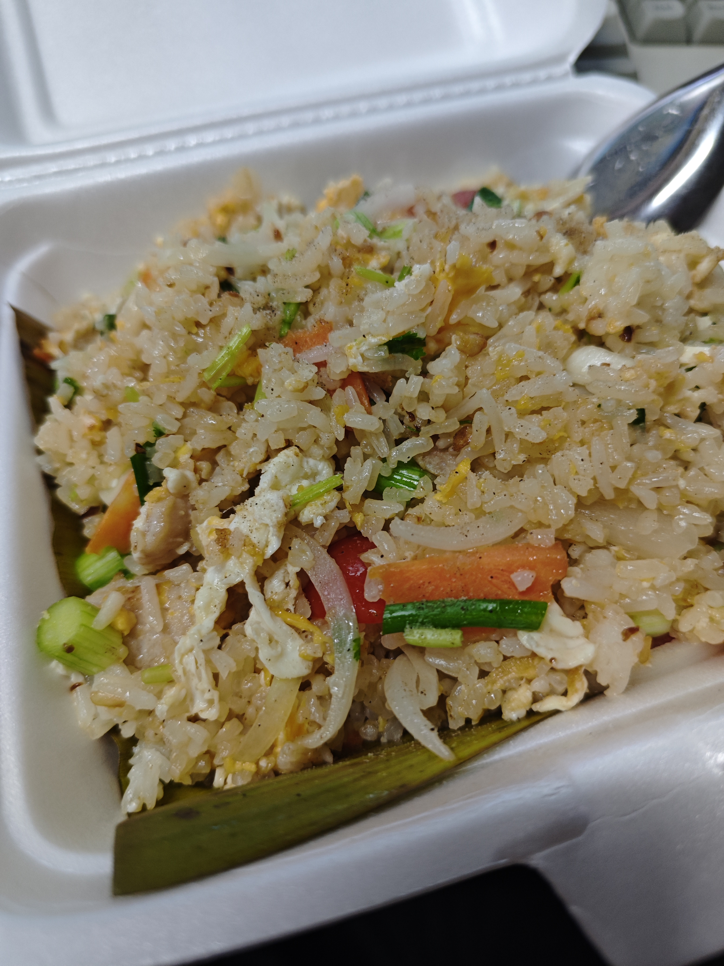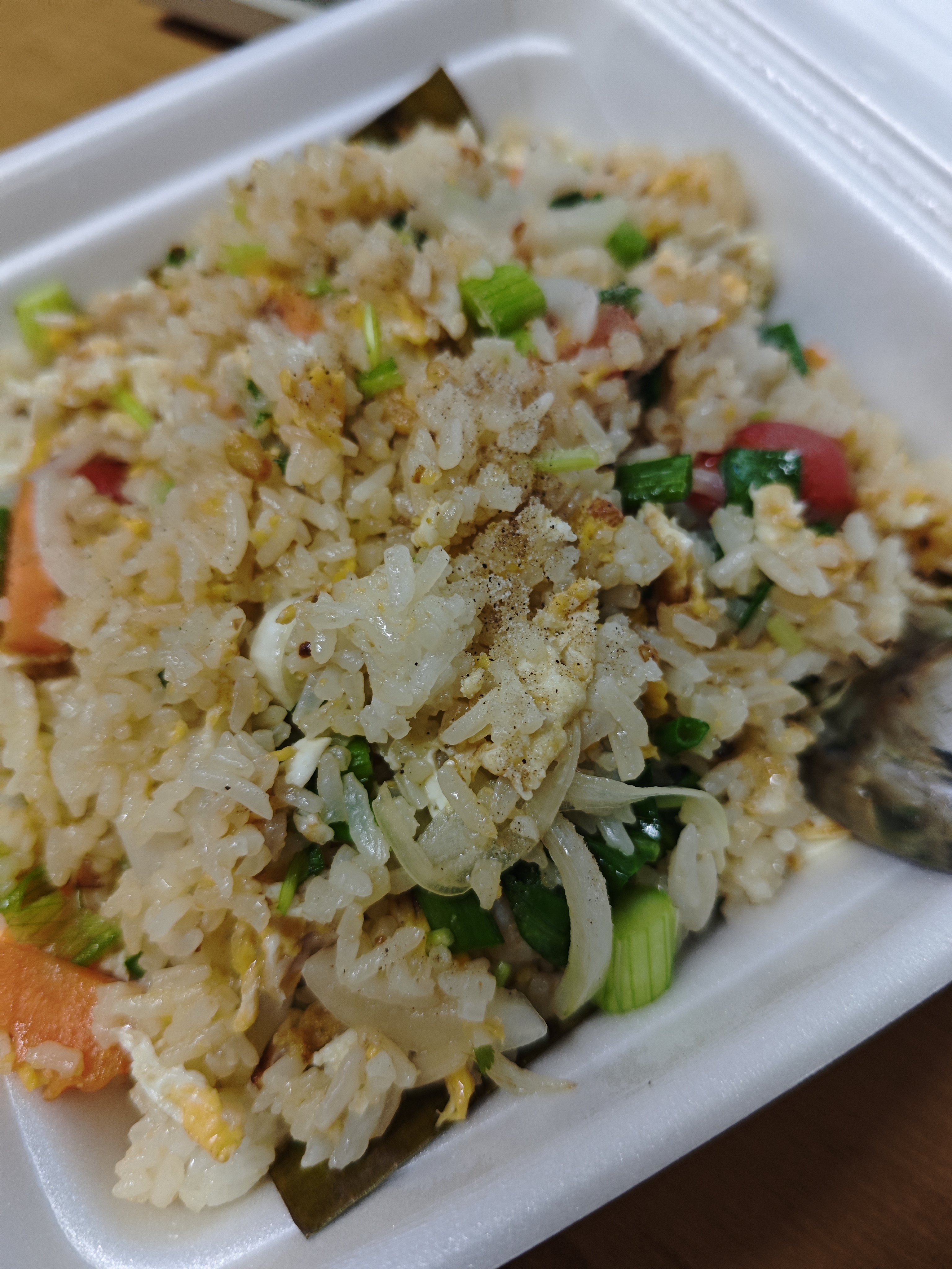 ผัก 5/10 สำหรับผม ข้าวผัดควรมีแค่คะน้ากับต้นหอมพอครับ หรือโล่งๆเลย อันนี้ก็แล้วแต่ละคนเลยครับ ข้าวผัดผมชอบแค่ 2 ผักนี้ อันนี้บอกก่อนร้านไม่ผิดนะ ผมบอกเอาผักแค่ 2 ผักนี้ก็ได้แหละครับ อันนี้คือแบบอยากรู้พื้นฐานเขาใส่ผักอะไรบ้างครับ