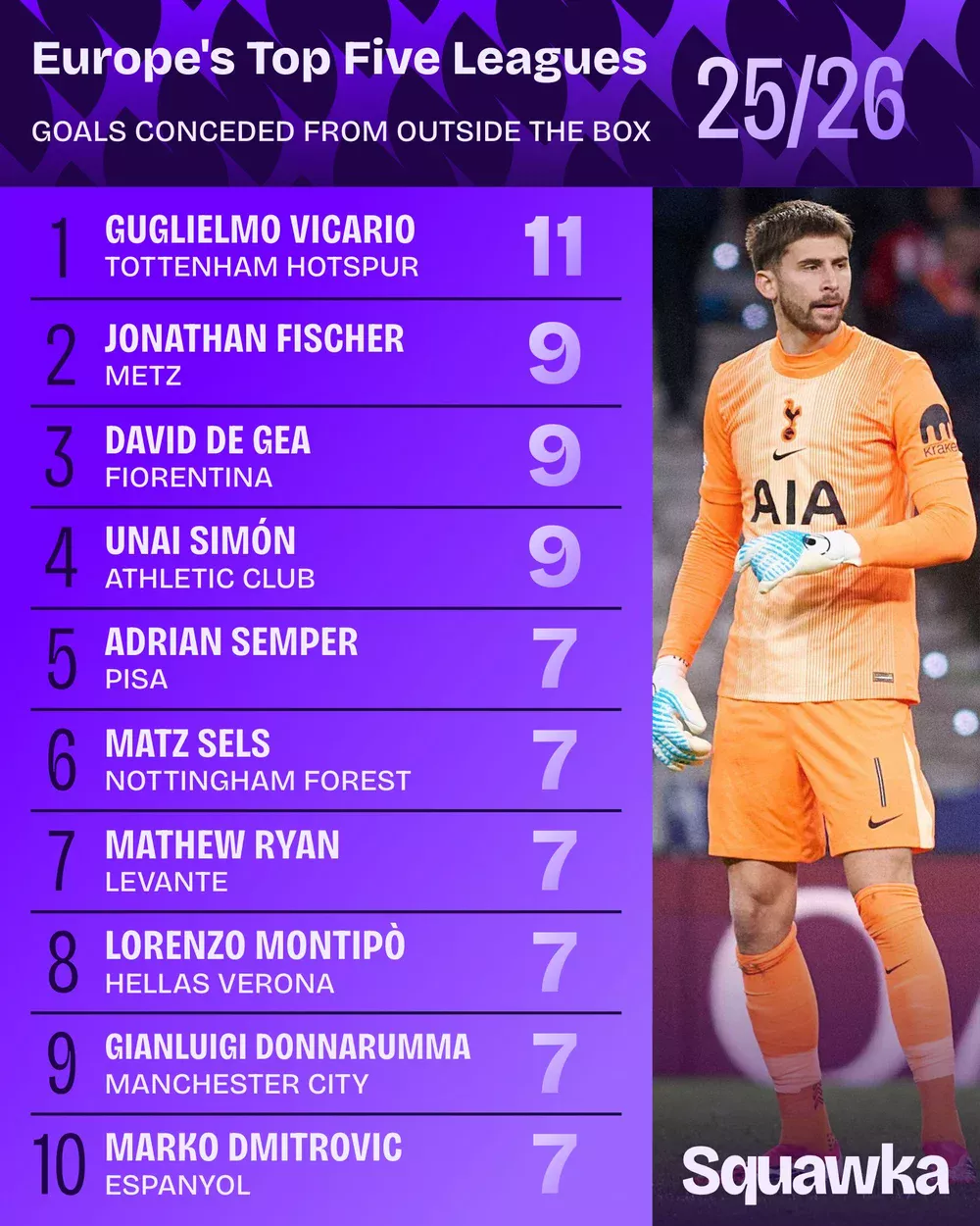 Top 10 GK ที่เสียประตูจากนอกเขตโทษมากที่สุด