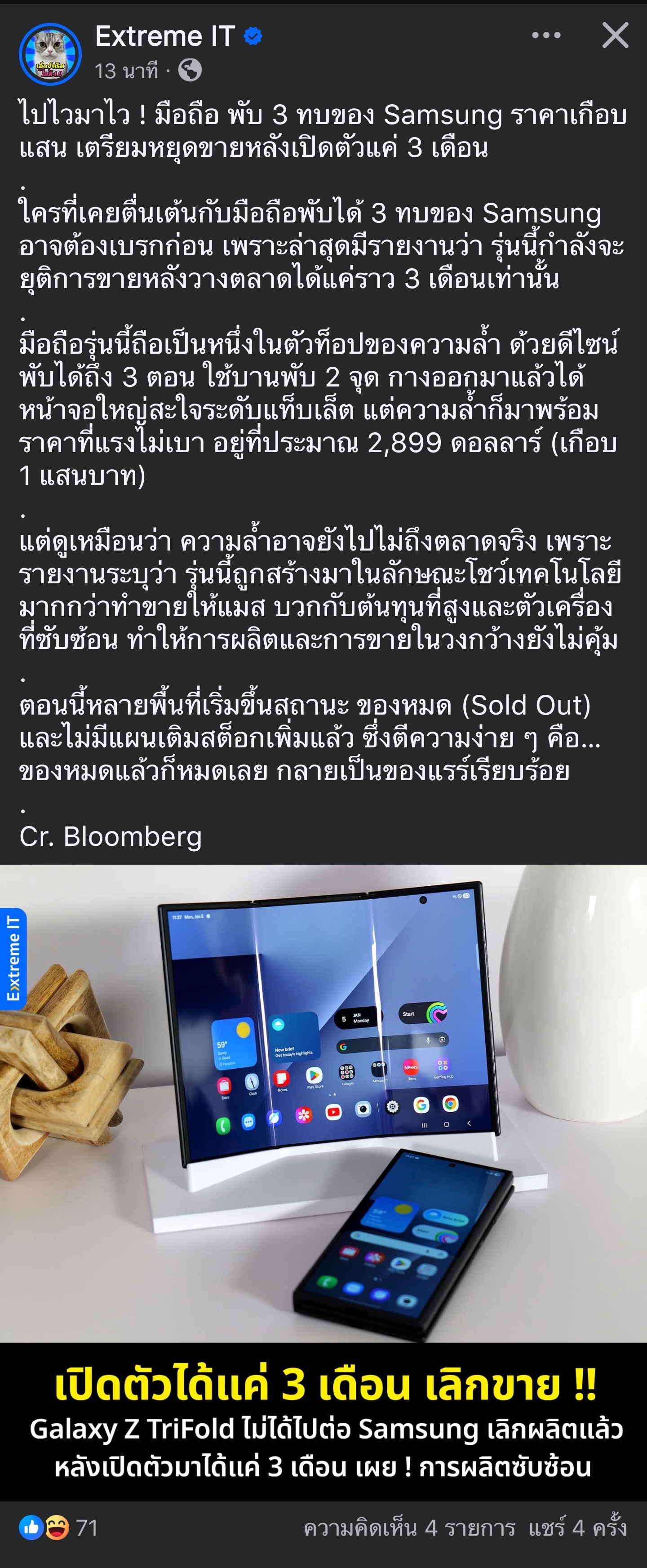 [RE: เปิดตัวได้แค่ 3 เดือน เลิกขาย !! มือถือพับ 3 ทบ ของ Samsung Galaxy Z TriFold]