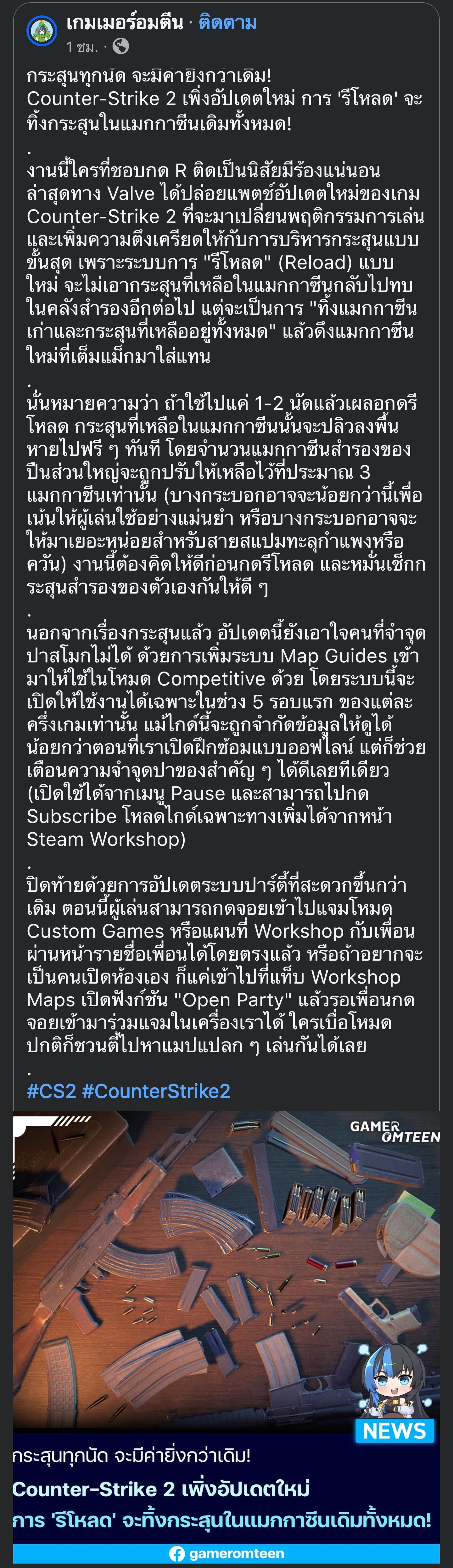 [RE: กระสุนทุกนัดมีค่า !! CS 2 เพิ่งอัปเดตใหม่ ปรับการ Reload กระสุน]