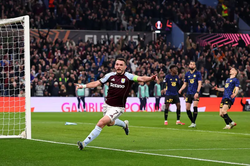 แอสตัน วิลล่าได้ 2 ประตูจาก จอห์น แมคกินน์ และ เลออน ไบลี่ย์ ตอกย้ำชัยชนะเหนือลีลล์ 2-0 ตีตั๋วผ่านเข้ารอบ 8 ทีมสุดท้ายูฟ่า ยูโรป้าลีก ได้สำเร็จที่สกอร์รวม 3-0 โดยไฮไลท์เกมนี้อยู่ที่ความยอดเยี่ยมของ เอมี่ มาร์ติเนซ วางบอลยาวโต้กลับช่วยให้ทีมได้ประตูแรกนาทีที่ 54