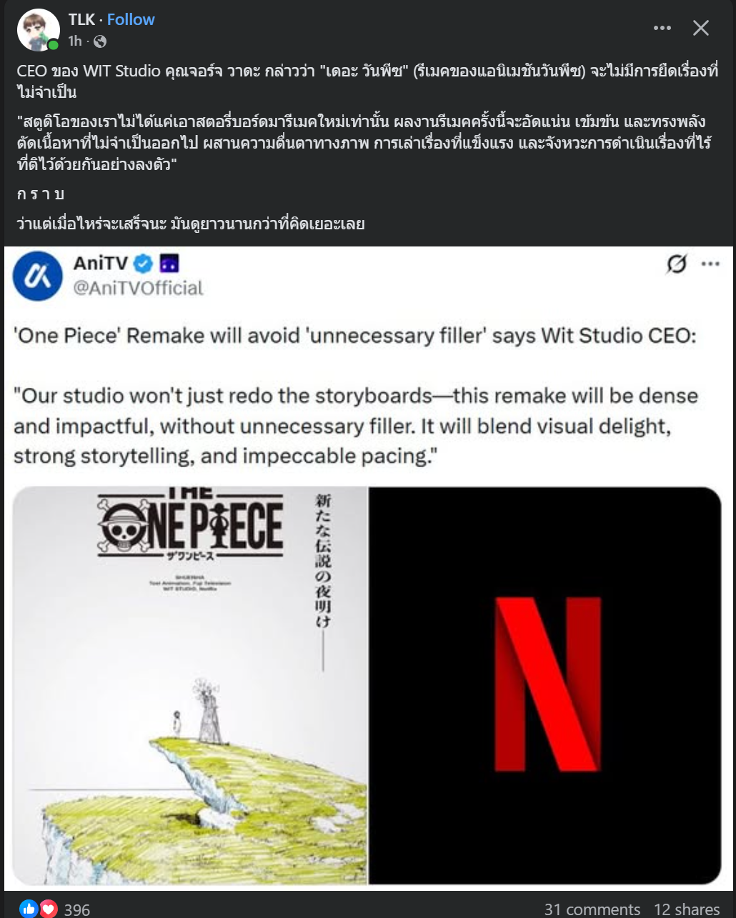 Re: "เดอะ วันพีซ" (รีเมคของแอนิเมชันวันพีซ) จะไม่มีการยืดเรื่องที่ไม่จำเป็น