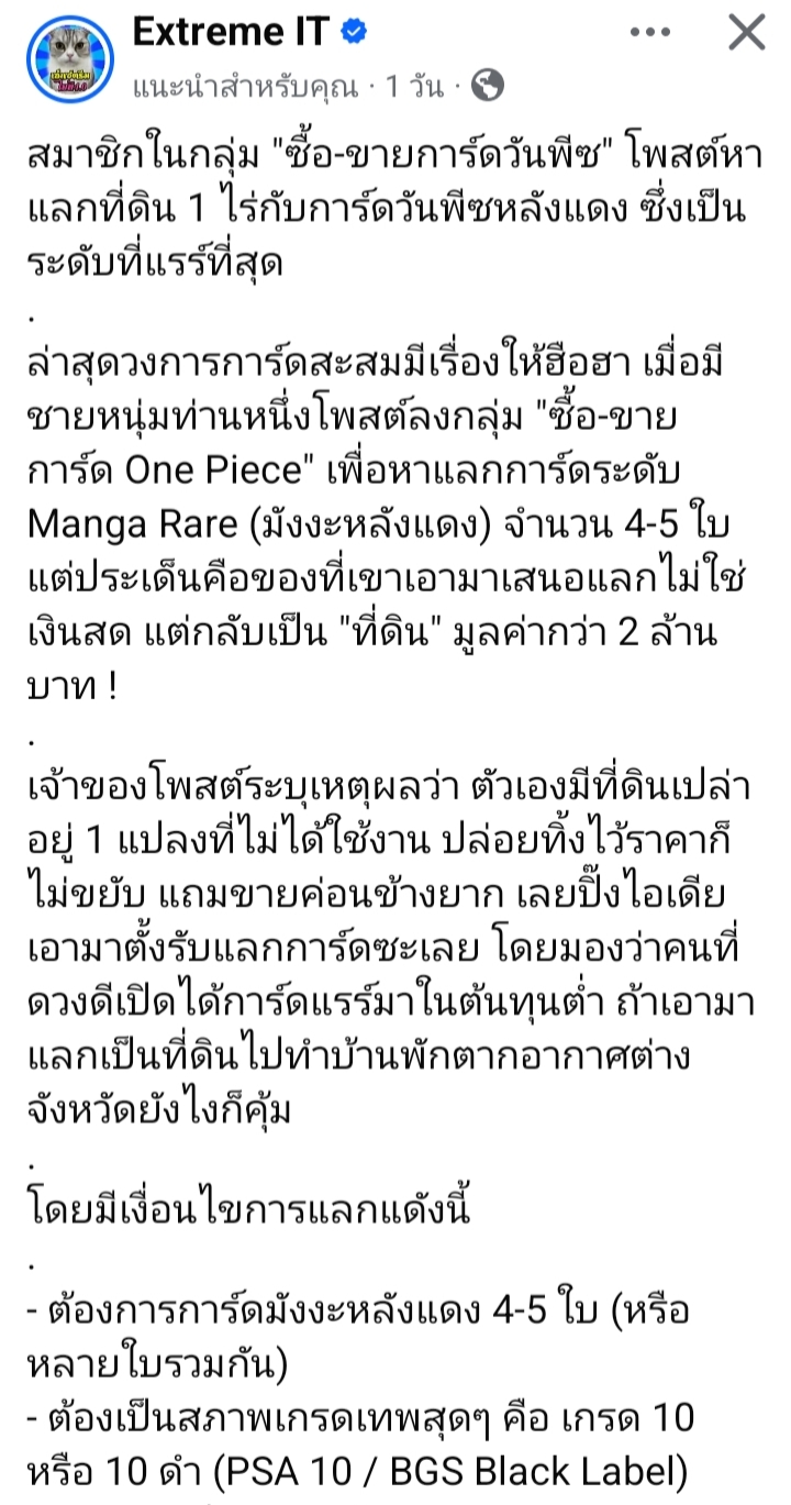 โฉนดที่ดินแลกการ์ดวันพีช !?