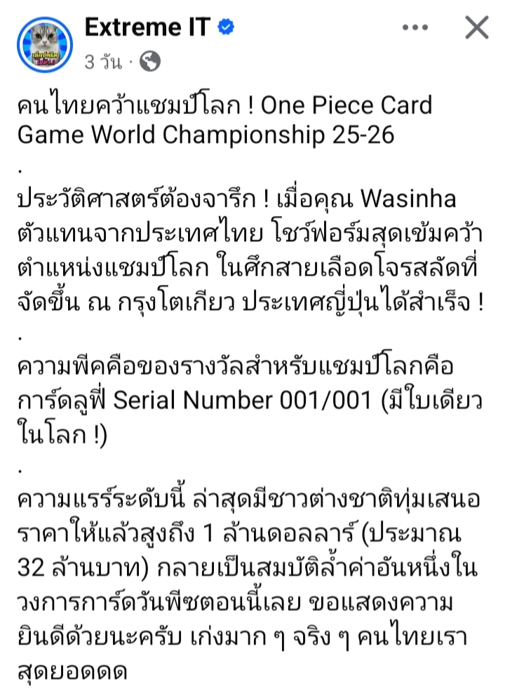 > คนไทยแข่งชิงรางวัลการ์ดวันพีชมาได้