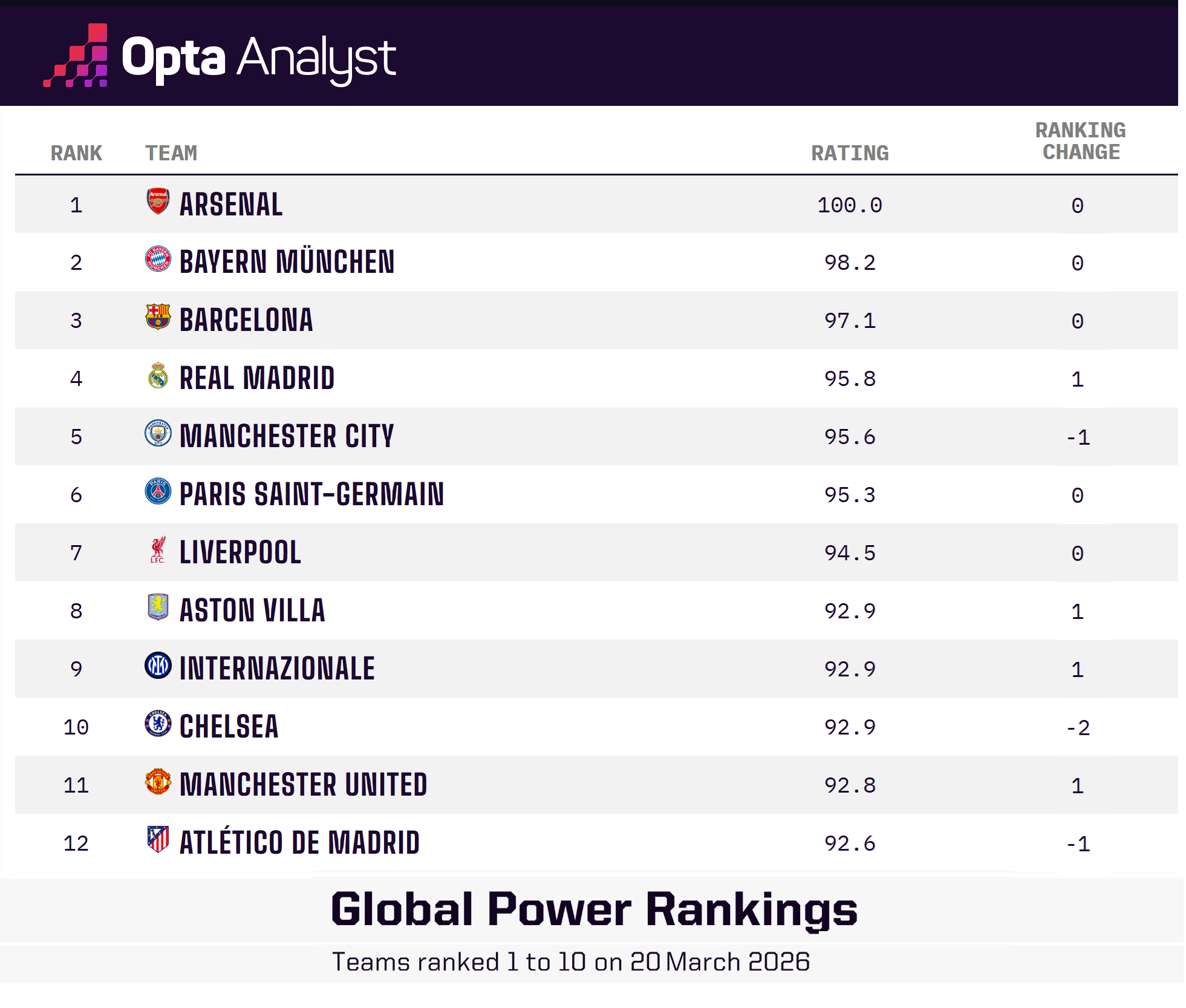[RE: [ARS]ปืนขึ้นเบอร์1ของโลกซีซั่นนี้Opta Global Power Ranking 2025-26]