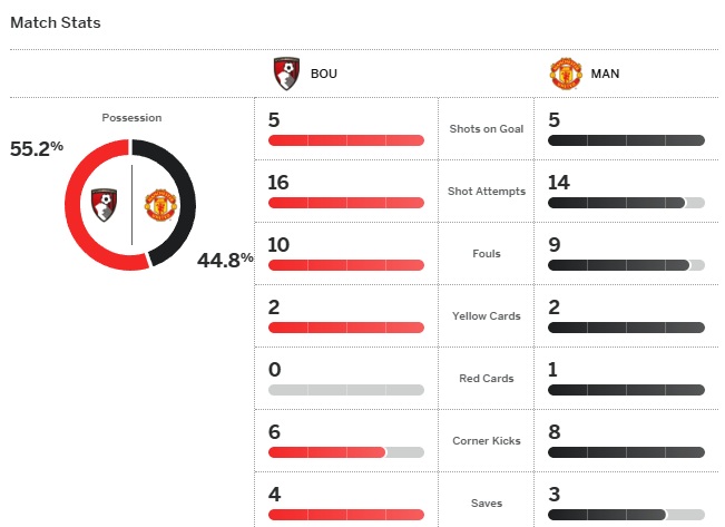 พอเหลือ 10 คน ยูไนเต็ดทำได้แค่ตั้งรับ บอร์นมัธตัวมากกว่าเดินหน้าลุยจะเอาสามคะแนนให้ได้