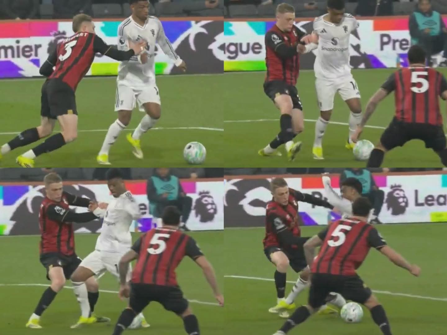 ปิศาจแดง แมนเชสเตอร์ ยูไนเต็ด เจอพิษมาตรฐานการตัดสินของกรรมการไปแบบเต็มๆ จากจังหวะที่พวกเขาควรจะได้ลุ้นประตู 2-0 จากอาหมัด ดิยาลโล่ ที่ถูกผลักล้มในกรอบ กลายเป็นโดนตีเสมอ 1-1 แถมช่วงท้ายเกม แฮร์รี่ แมคไกวร์ ยังมาถูกไล่ออกในลักษณะคล้ายๆ กันอีก ก่อนทีมโดนจุดโทษตีเสมอ 2-2 ทำให้จบเกมต้องแบ่งแต้มบอร์นมัธไปแบบน่าเจ็บใจสุดๆ