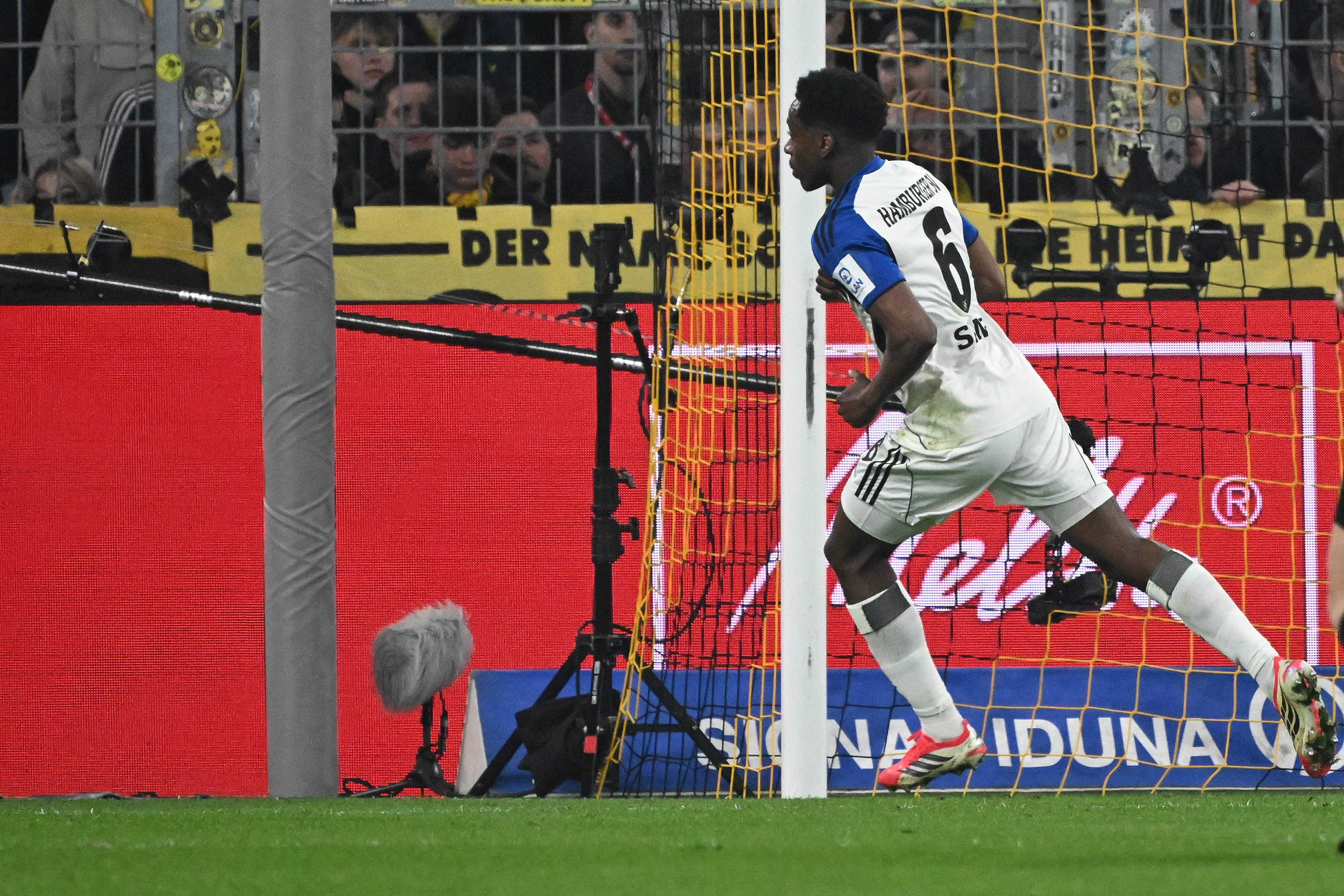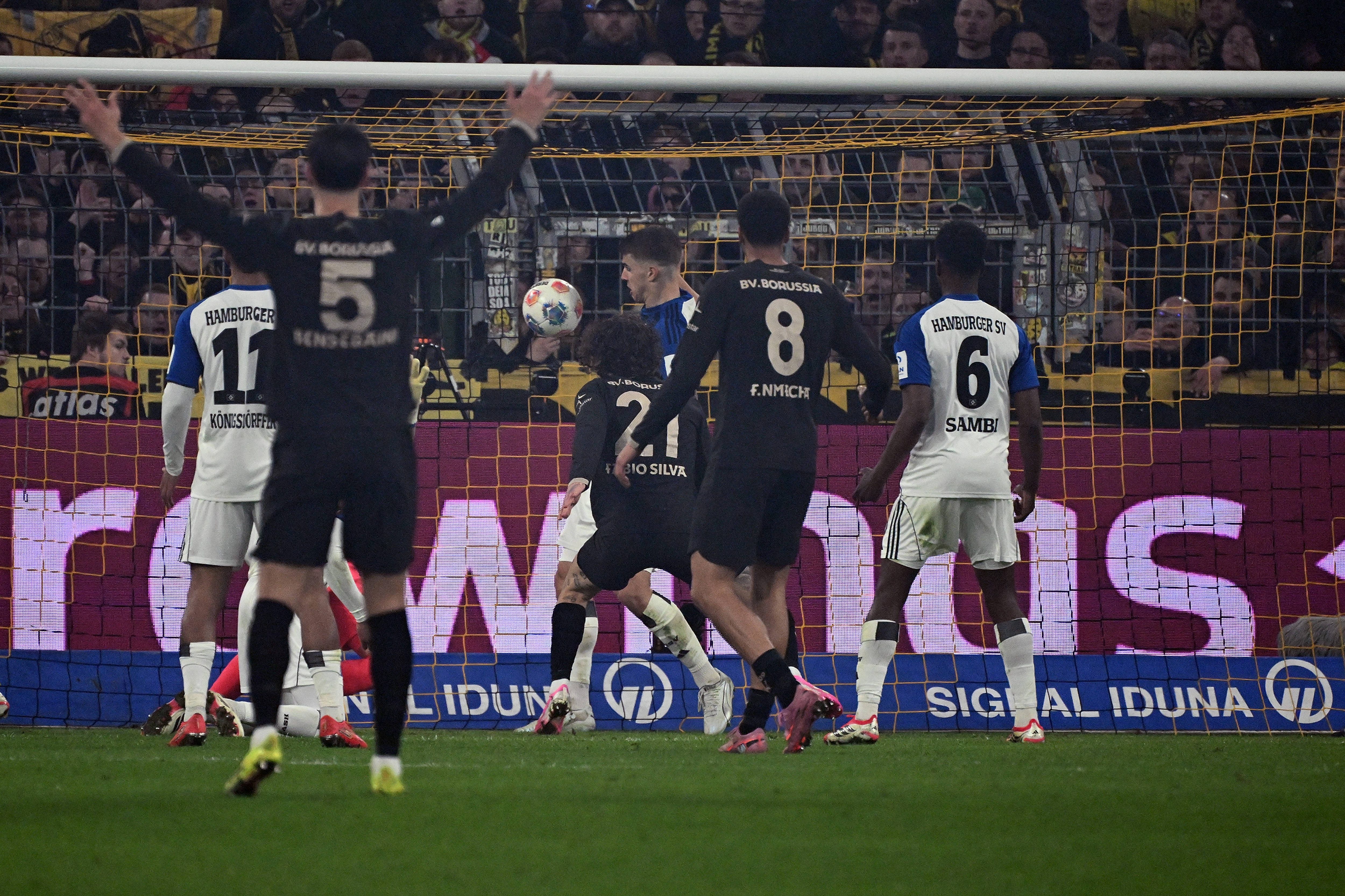 หลังจากนั้นมา ดอร์ทมุนด์ หาทางเจาะไม่เจอก่อนจะถูก ฮัมบวร์ก เอาประตูนำไปได้หลังจากเปิดขึ้นหน้าไปแล้วมีตัวโหม่งต่อ สเวนสัน ดักได้แต่เจอ มิเคลเบรสซิส มาแย่งบอลไปพาเข้าเขตโทษแล้วจ่ายไปหน้าประตูให้ โอเตเล่ มาชาร์จเข้าไป ฮัมบวร์ก นำ 1-0