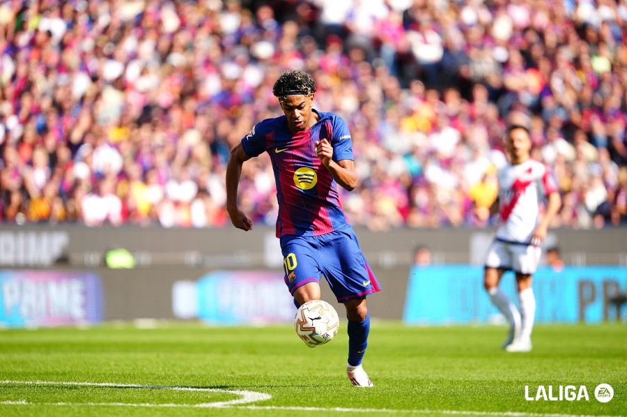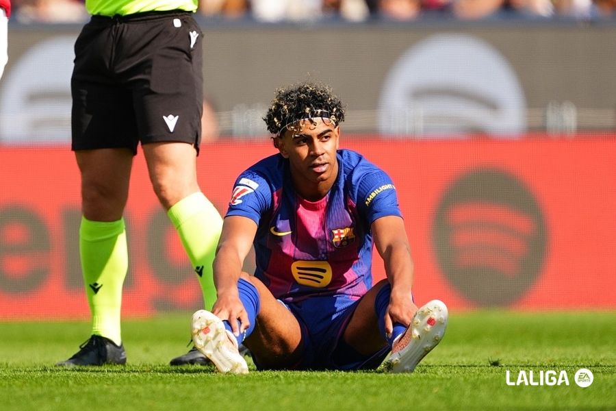 ยามาล ได้บอลหน้าเขตโ์ทษก่อนพลิกหนีตัวประกบได้จบ แต่ไม่ดีพอ ลูกมันหลุดกรอบออกหลังไป