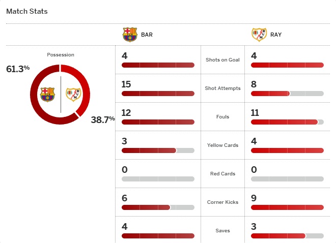 จบเกม บาร์ซ่าเบียดเอาชนะราโย 1-0