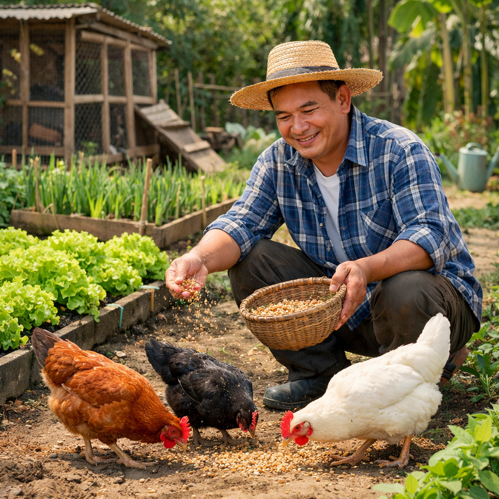 ที่บ้านมีสวนอยู่แล้ว คนดูแลปลูกผักสวนครัว เลี้ยงไก่ เลี้ยงปลาอยู่แล้ว