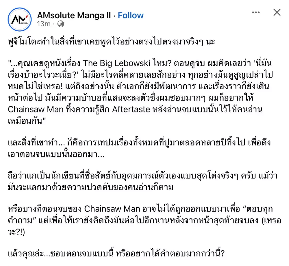 [RE: (สปอยตอนจบ) ขุดสัมภาษณ์คนเขียน Chainsaw Man ตั้งแต่ 5 ปีที่แล้ว]
