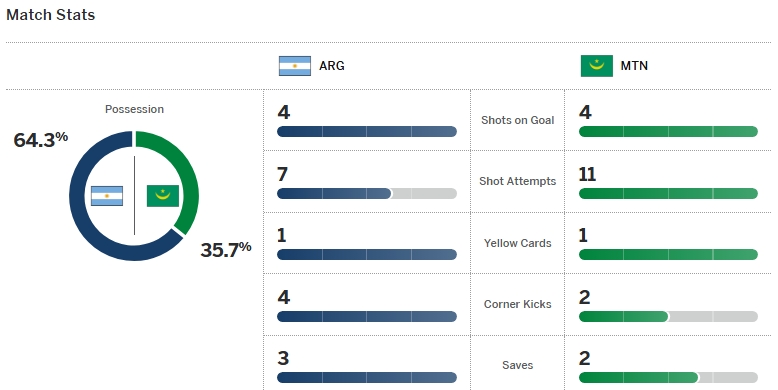 จังหวะเดียวของ เมสซี่ ก็โดนบล็อกเอาไว้ ขณะที่ มอริเตเนีย เริ่มตั้งเกมได้ดีขึ้น และกดดันจน เอมิเลียโน่ มาร์ติเนซ ต้องออกแรงเซฟหลายครั้ง