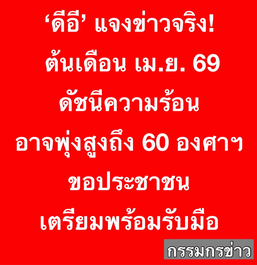 “ต้นเดือนเมษายน 69 ดัชนีความร้อนอาจพุ่งสูงถึง 60 องศาฯ” กระทรวงดีอี โดยกรมอุตุนิยมวิทยา ยืนยันเป็น “ข่าวจริง” ซึ่งค่าดัชนีความร้อน (Heat Index) เป็นอุณหภูมิที่ร่างกายของคนเรารู้สึกได้จริง ไม่ใช่อุณหภูมิของอากาศที่วัดได้จากเครื่องมือทั่วไป โดยดัชนีความร้อนนี้คำนวณจากอุณหภูมิอากาศร่วมกับค่าความชื้นสัมพัทธ์ ซึ่งเป็นตัวบ่งชี้ถึงความเสี่ยงที่ร่างกายอาจได้รับผลกระทบจากความร้อนได้ดีกว่าอุณหภูมิปกติ ยิ่งความชื้นสูง ร่างกายจะยิ่งรู้สึกร้อนและอึดอัดมากขึ้น