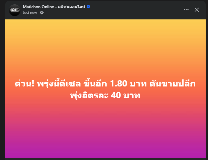 ดีเซล + 1.8 บาท ขายปลีก ทะลุ 40 แล้ว