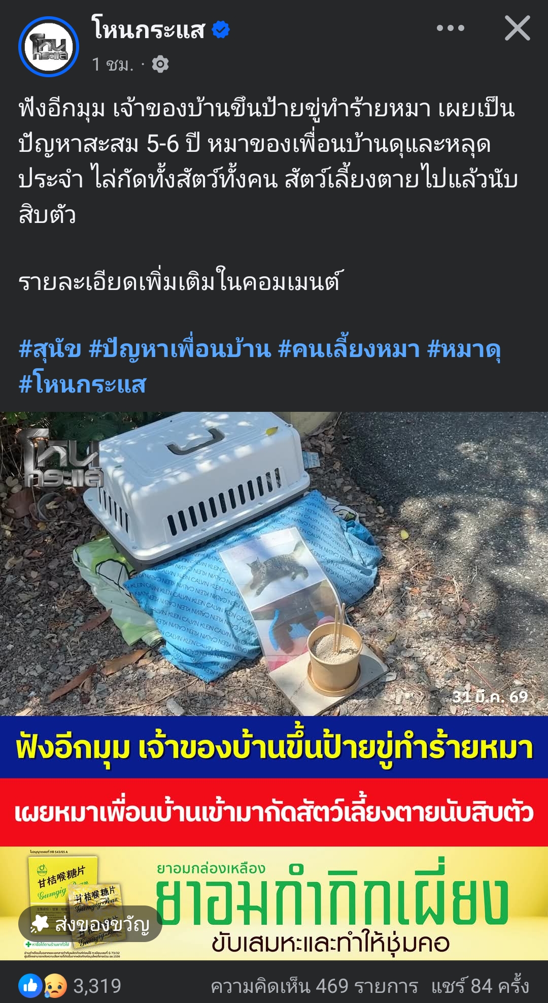 [RE: ฟังอีกมุม เจ้าของบ้าน เผยหมาเพื่อนบ้านเข้ามากัดสัตว์เลี้ยงตายนับสิบตัว]