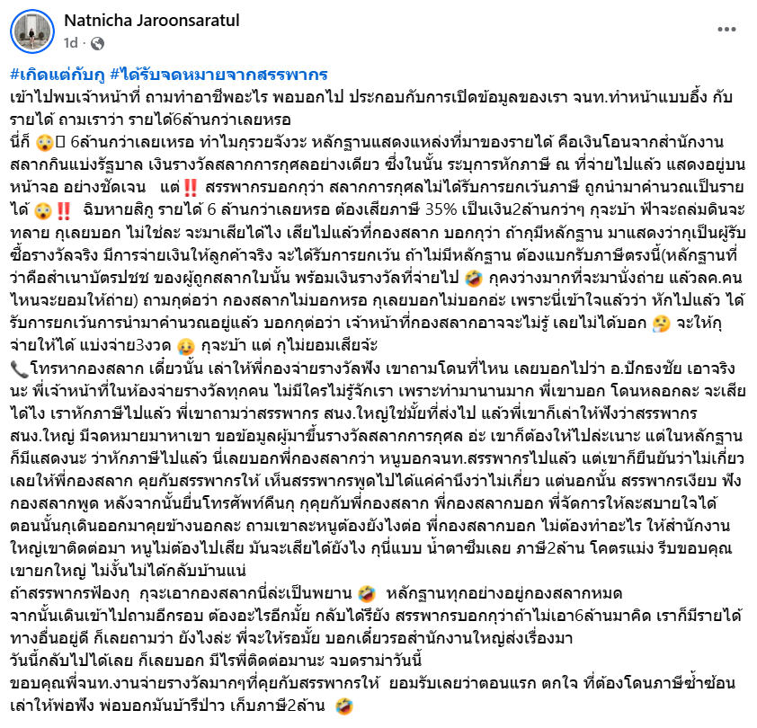 Re: ถูกหวย 6 ล้าน แต่สรรพากรบอกต้องเสียภาษีเพิ่ม 2 ล้าน!