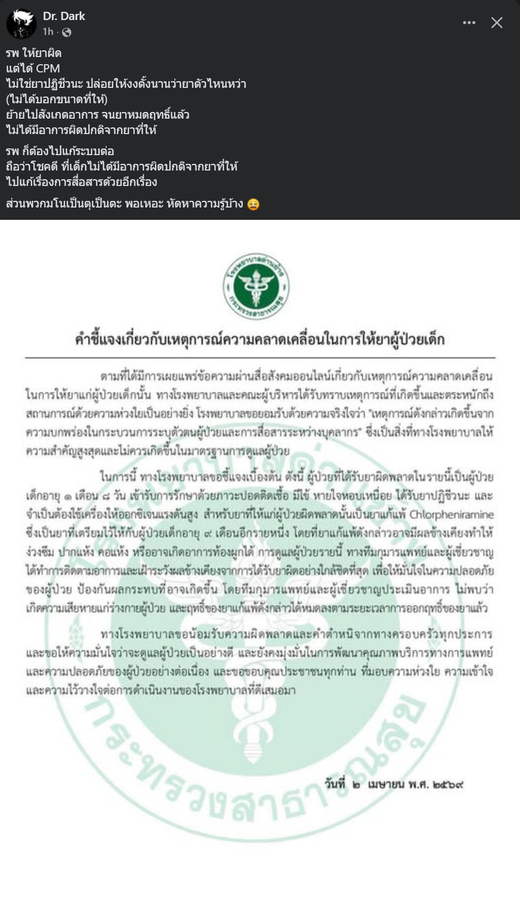 [RE: พ่อร้อง รพ. ฉีดยาให้ลูกวัย 1 เดือนผิดขนาด ฉีดขนาดผู้ใหญ่ให้]