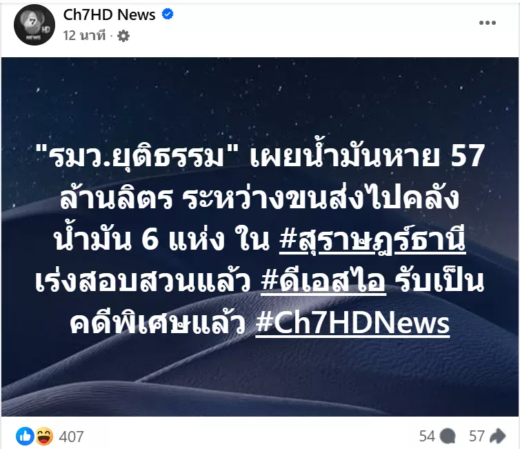 Re: ข่าวดีคนไทย! "รมว.ยุติธรรม" เผยน้ำมันหาย 57 ล้านลิตร ระหว่างขนส่งไปคลังน้ำมัน 6 แห่ง ในพื้นที่ สุราษฏ์ธานี