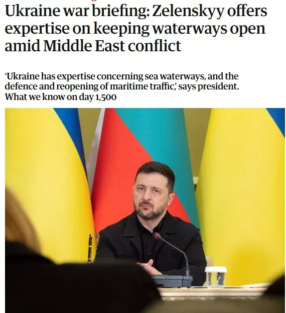 ประธานาธิบดี Volodymyr Zelenskyy เปิดเผยว่า ยูเครนพร้อมเสนอ “ความเชี่ยวชาญด้านการเดินเรือและการป้องกันเส้นทางทะเล” เพื่อช่วยประเทศต่าง ๆ รักษาการเปิดใช้งาน Strait of Hormuz ท่ามกลางความตึงเครียดในตะวันออกกลาง โดยอ้างอิงจากประสบการณ์ใน Black Sea