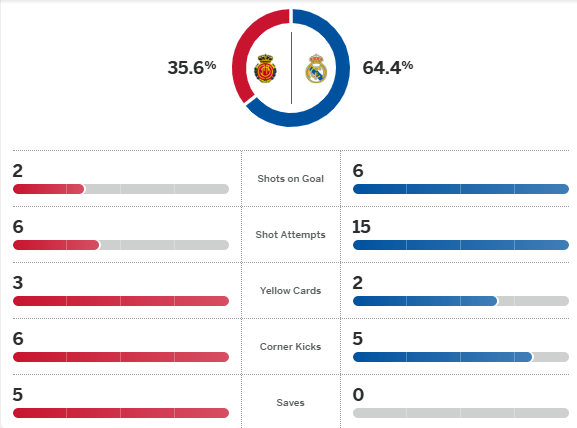 เรอัล มาดริด ครองบอลสร้างโอกาสมากกว่า กลับโดน มาญอร์ก้า ยิงนำท้ายครึ่งแรก แม้นาที 88 เอแดร์ มิลิเตา โขกเตะมุมตีเสมอ แต่ทดเจ็บ 90+1 เจอทีเด็ด เวดัต มูริกี้ ผลิตสกอร์ตัดสิน บุกพ่ายทีมหนีตกชั้น 2-1 หยุดฟอร์มชนะรวดไว้ที่ 5 นัดทุกรายการ ตามจ่าฝูง ลาลีก้า 4 แต้มก่อน บาร์เซโลน่า ลงแข่ง