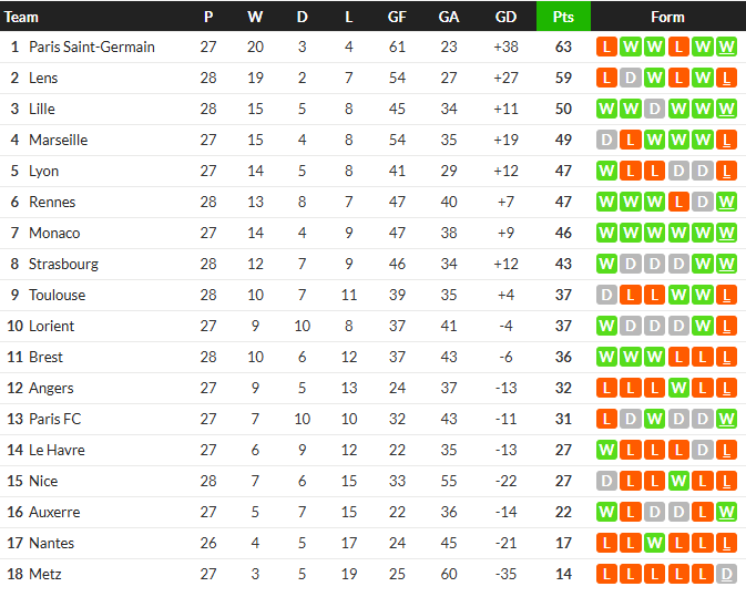 ล็องส์แพ้ลีลล์ 3-0, สตราส์บูร์กอัดนีซ 3-1...สรุปผลลีกเอิง