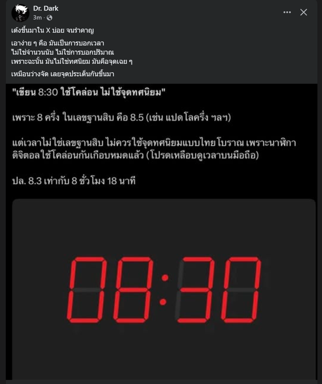 แต่ถ้าพิมพ์ 8.3 หรือ 8:3 คนจะเข้าใจไหม? (03 หรือ 30?) ซึ่งแบบที่สอง มันไม่มีใครมาพิมพ์หรอกมั้ง