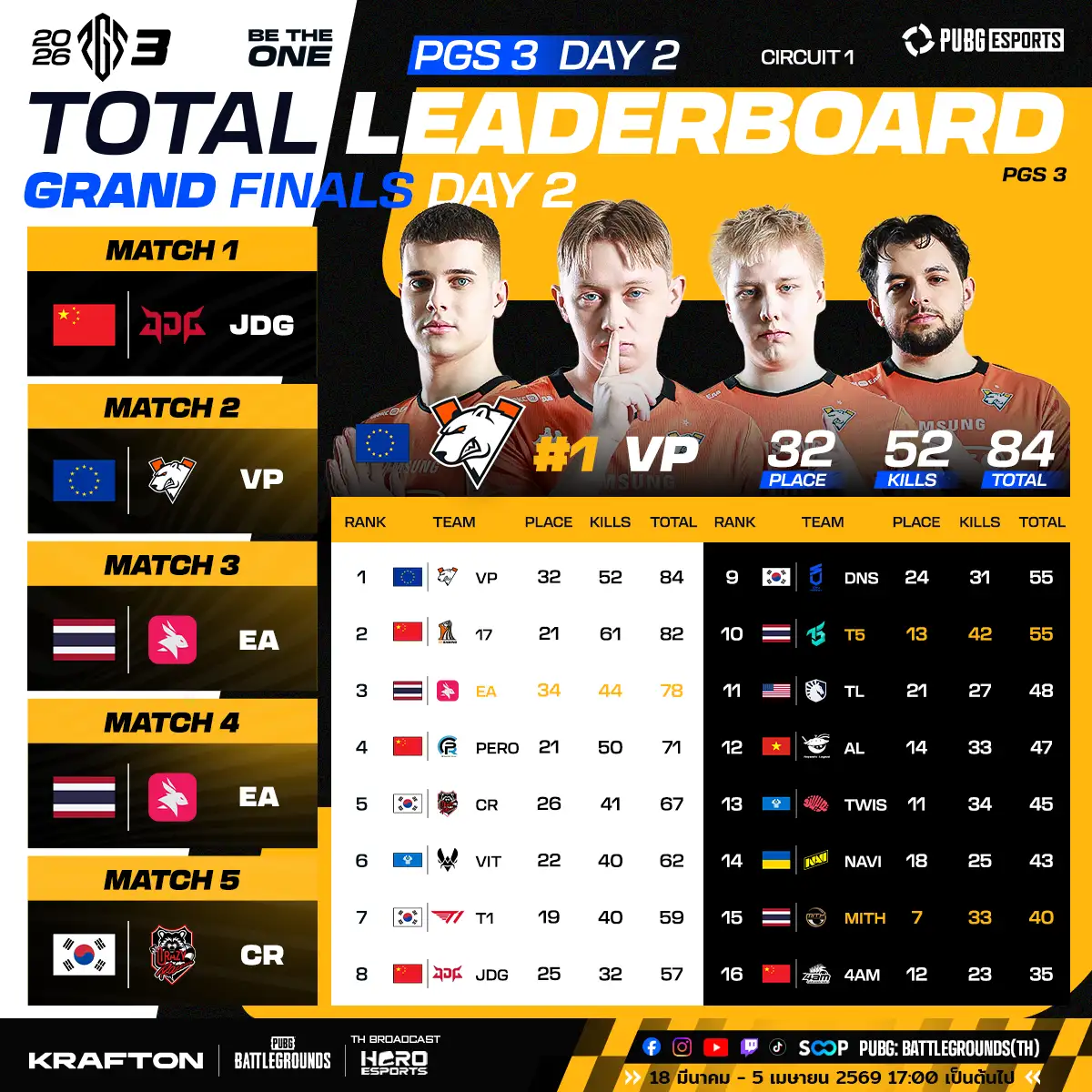 Re: [PUBG] PGS 2026 Circuit 1 Grand Finals วันสุดท้าย