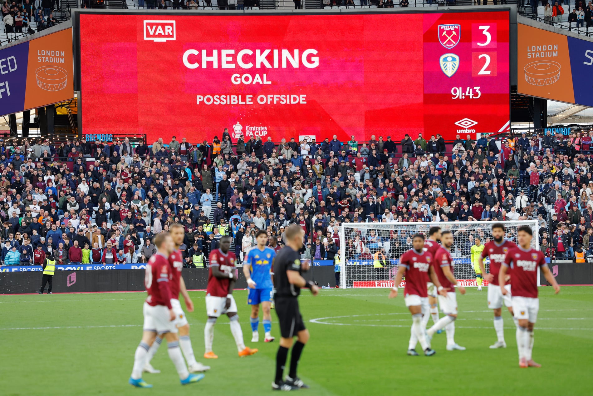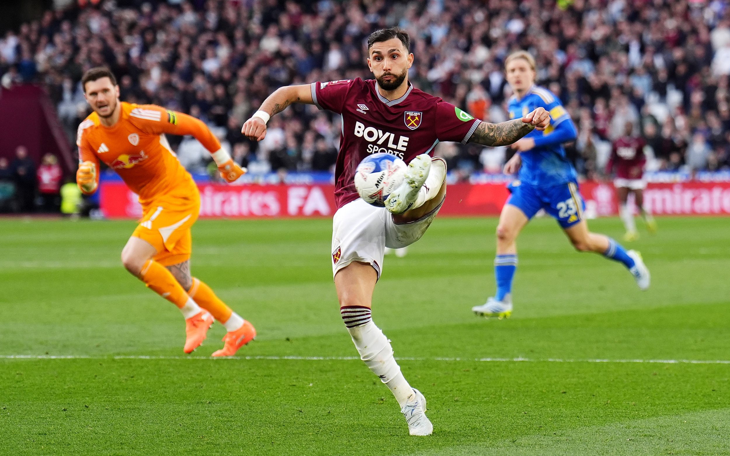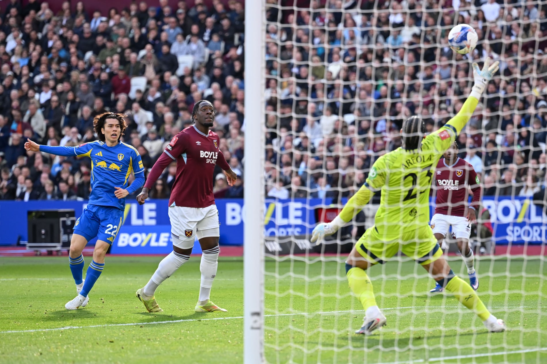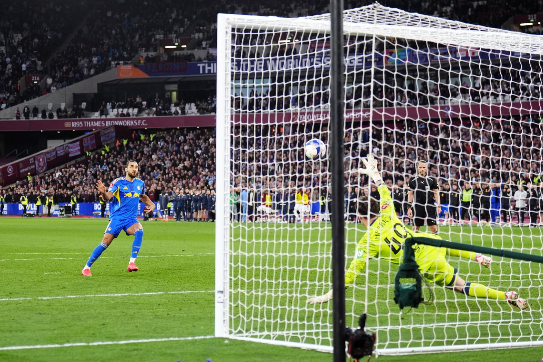 เกือบไปแล้วสำหรับ ลีดส์ ยูไนเต็ด อุตส่าห์นำก่อน 2-0 แต่ดันพลาดท่าโดน เวสต์แฮม ยูไนเต็ด ยิงเบิ้ลช่วงทดเจ็บไล่ตีเสมอ 2-2 ทำให้เกมต้องลากยาวจนถึงการยิงจุดโทษตัดสินแต่ ยูงทอง ยังแม่นกว่าดวลเป้าชนะผ่านเข้าสู่เอฟเอ คัพรอบรองชนะเลิศเป็นหนแรกตั้งแต่ปี 1987