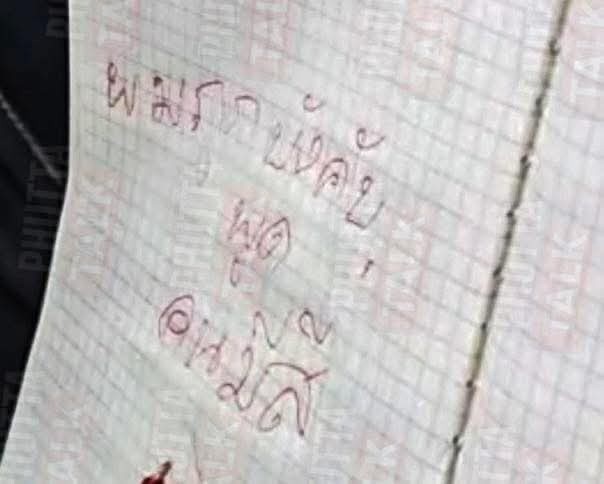 ◼️ ตอนท้ายของข่าว มีการเปิดเผยกระดาษโน้ตปริศนาที่ผู้ต้องหาเขียนส่งให้ทีมข่าว ระบุว่า "ผมถูกบังคับพูด คนมีสี"