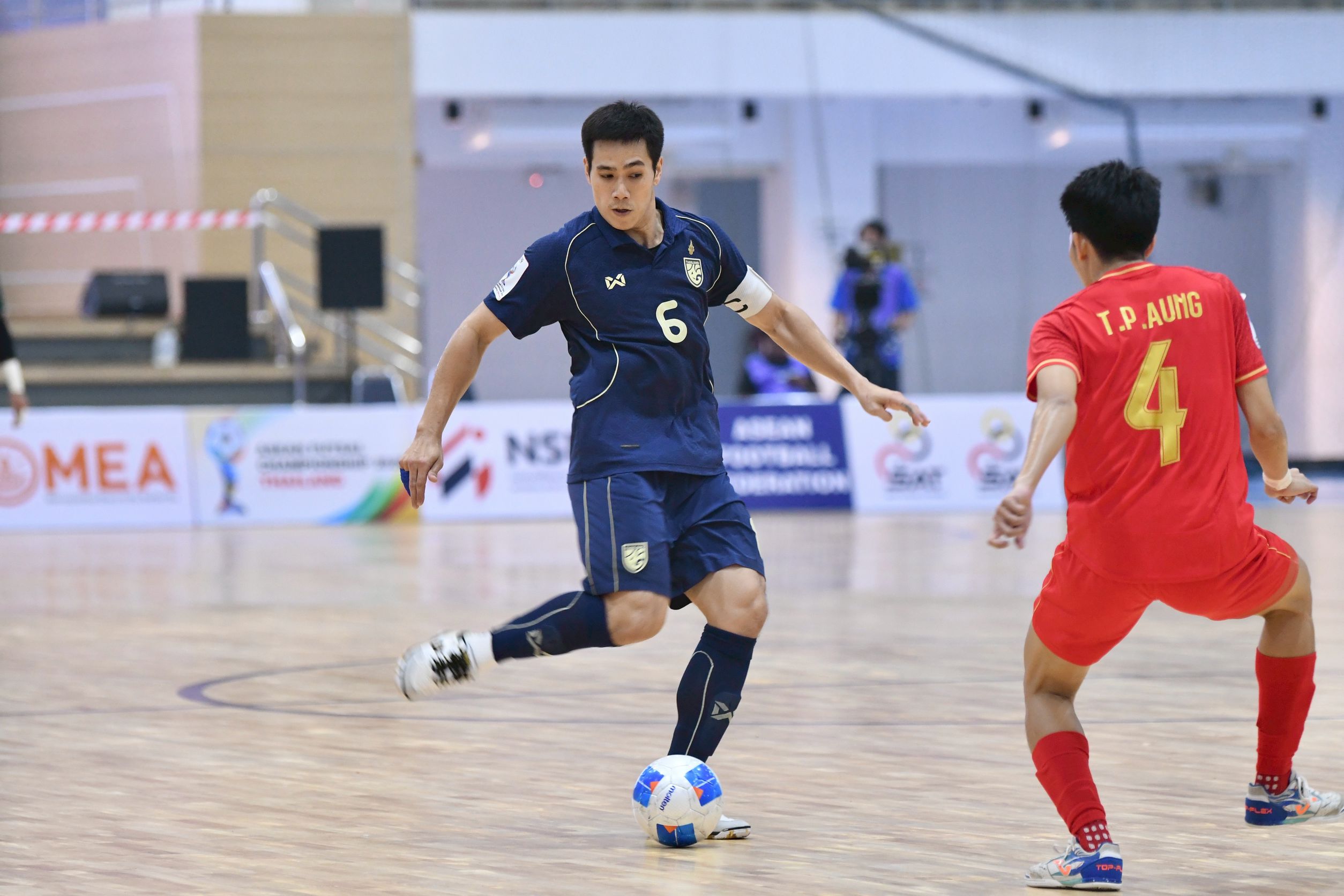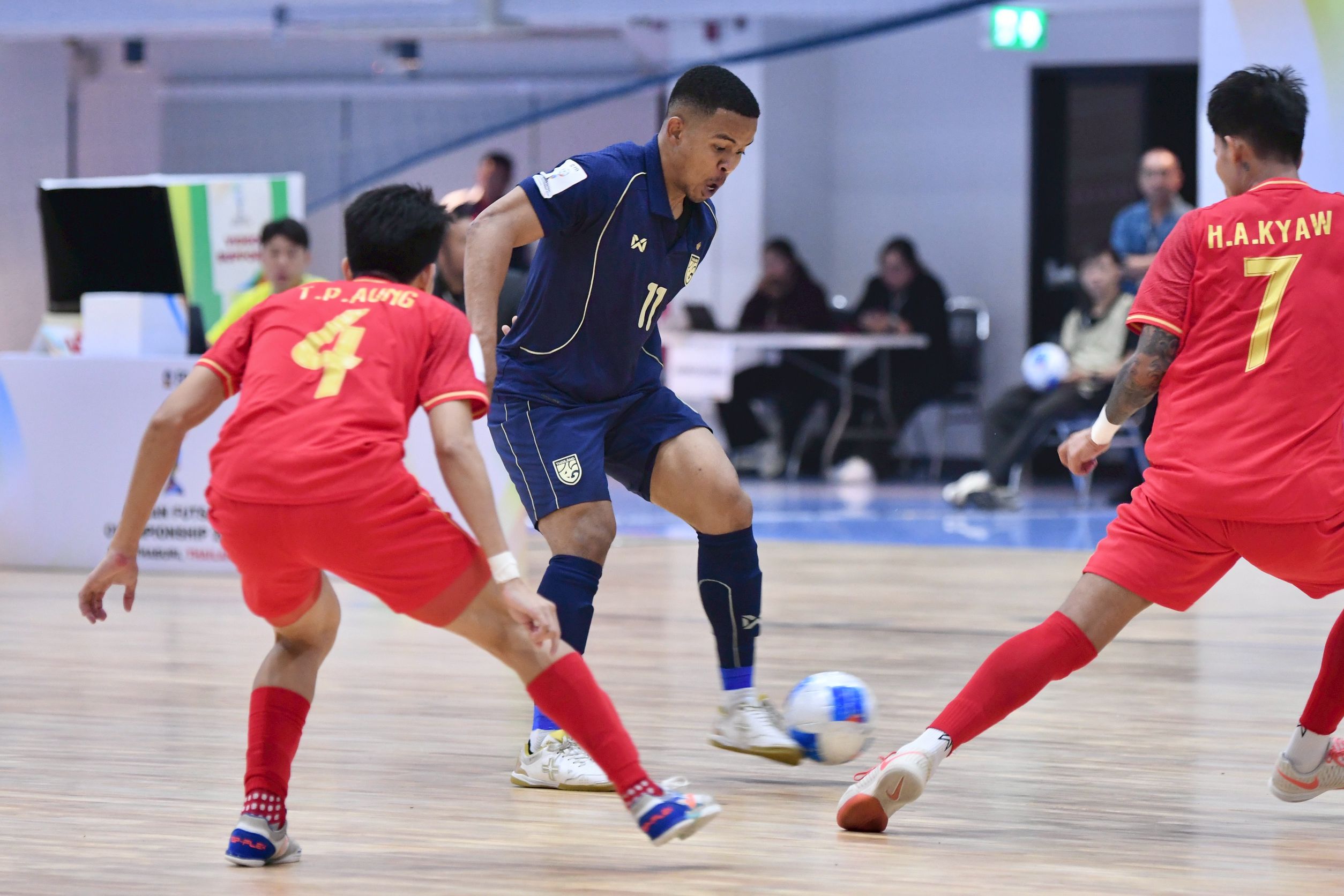 ศึกฟุตซอลชิงแชมป์อาเซียน 2026 ที่ยิมเนเซียม สนามกีฬากลาง อบจ.นนทบุรี วันที่ 7 เมษายน 2569 เป็นการแข่งขันนัดที่สอง กลุ่มเอ ทีมชาติไทย อันดับ 11 โลก แชมป์ 16 สมัย ภายใต้การคุมทัพของ “โค้ชหมี” รักษ์พล สายเนตรงาม พบกับ เมียนมา อันดับ 60 โลก ภายใต้การคุมทัพของกุนซือชาวไทย “โค้ชเอ๋” พัทยา เปี่ยมคุ้ม