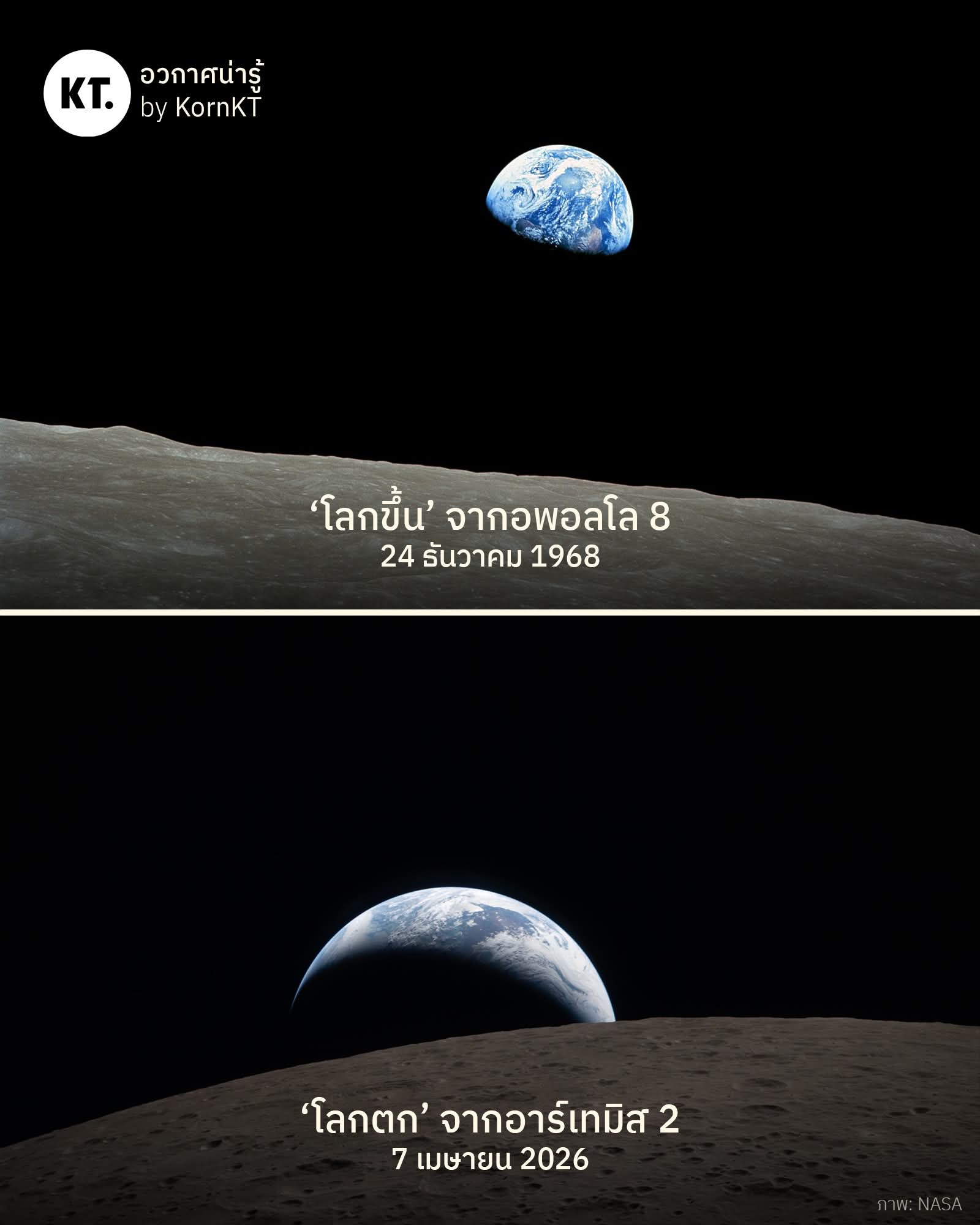 โลกขึ้น และ โลกตก จากสองภารกิจสำรวจดวงจันทร์ ในช่วงเวลาห่างกัน 58 ปี!