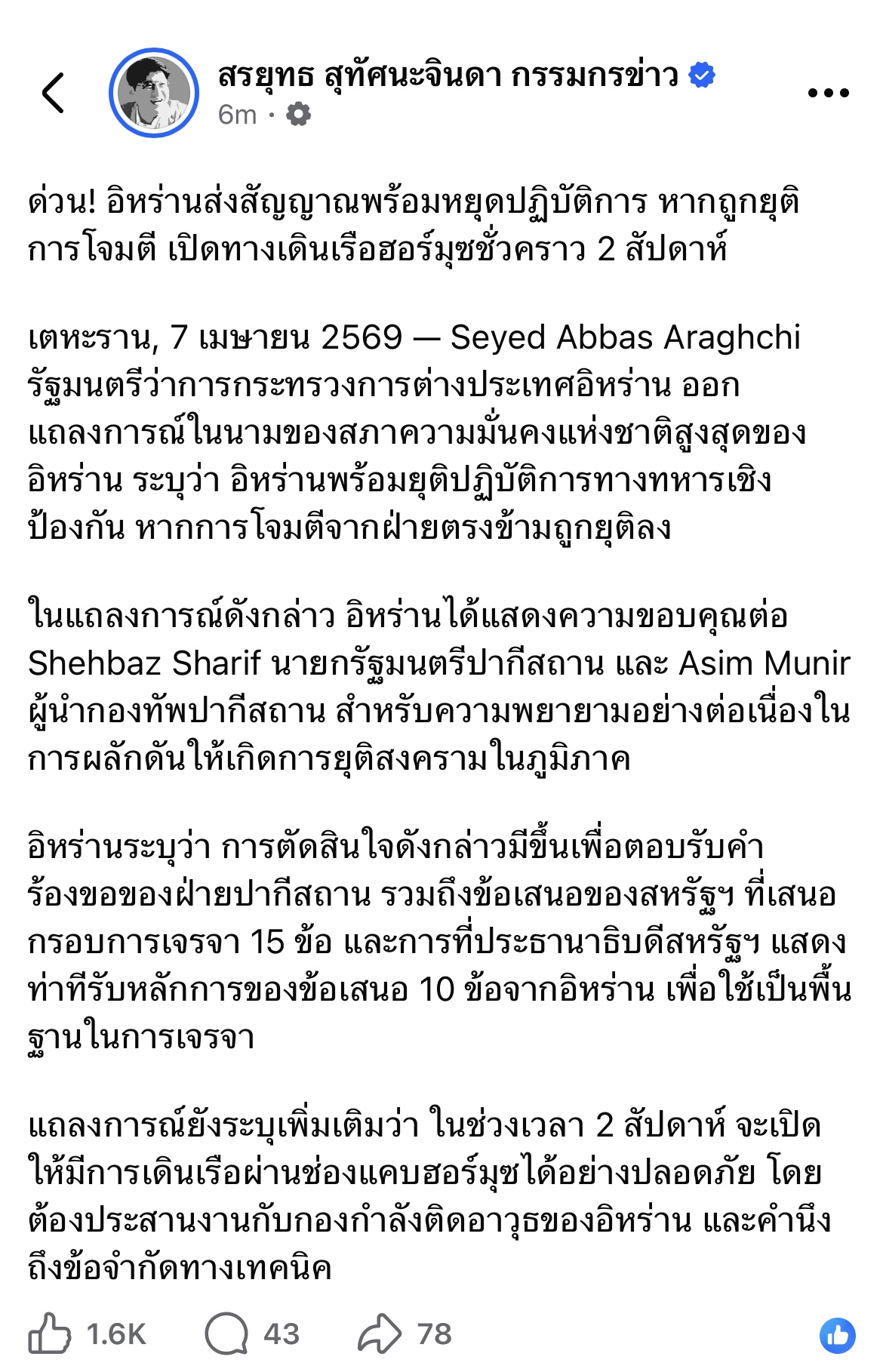 [RE: Breaking! อิหร่านเตรียมเปิดช่องแคบฮอมุซ]