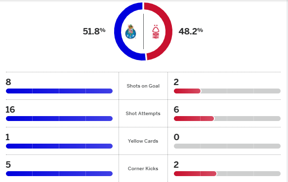น็อตติ้งแฮม ฟอเรสต์ โดนนำก่อนนาที 11 แล้วไม่นานตีเสมอด้วยจังหวะคู่แข่งจ่ายพลาดเข้าโกล์ตัวเอง จากนั้นถึงแม้ ปอร์โต้ ครองบอลสร้างโอกาสมากกว่าแต่นายด่าน สเตฟาน ออร์เตก้า ช่วยเซฟหลายครั้งให้ตัวแทน พรีเมียร์ ลีก บุกเสมอจ่าฝูงโปรตุเกส 1-1 ศึก ยูโรป้า ลีก รอบ 8 ทีมเลกแรก