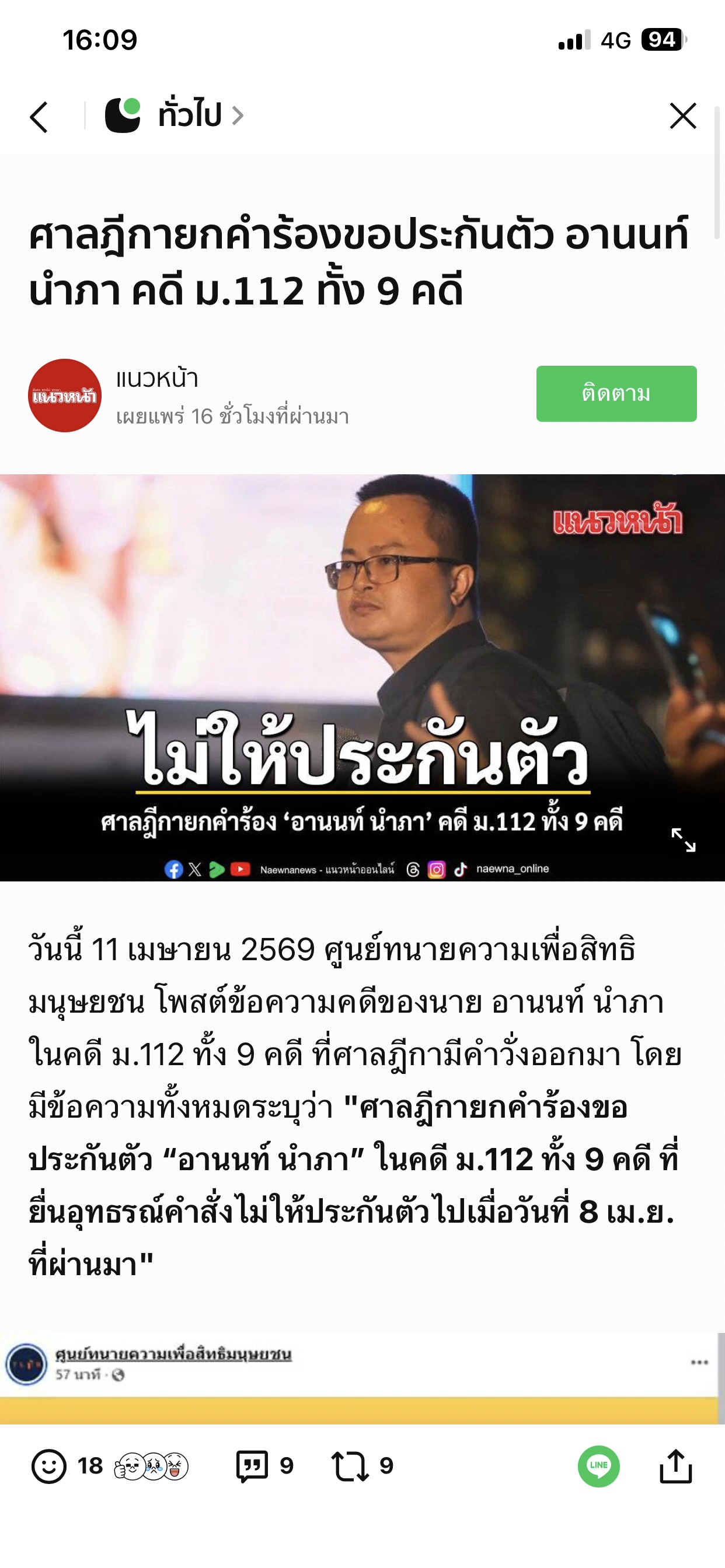 Re: ศาลฎีกา ยกคำร้องประกันตัวทนายอานนท์