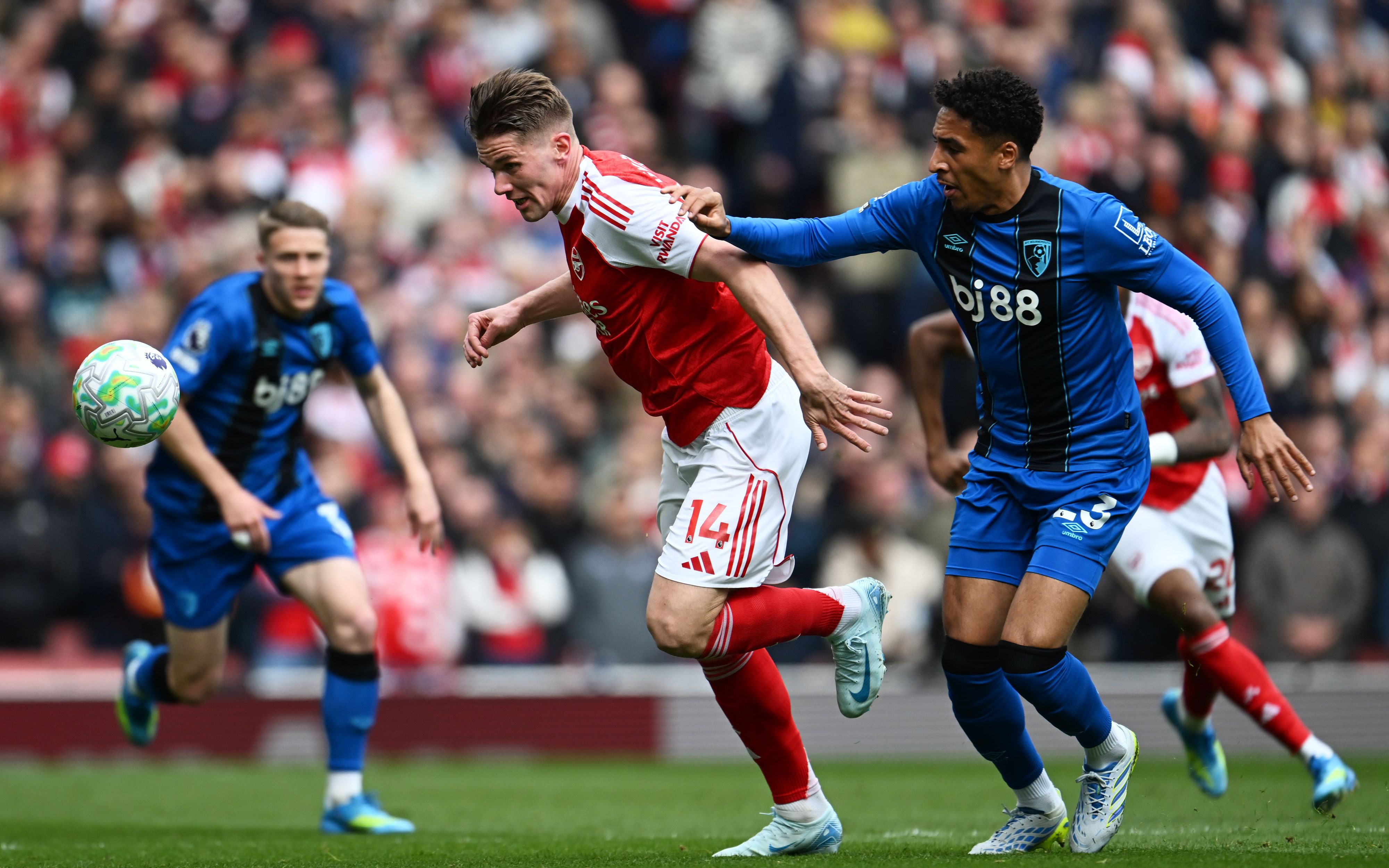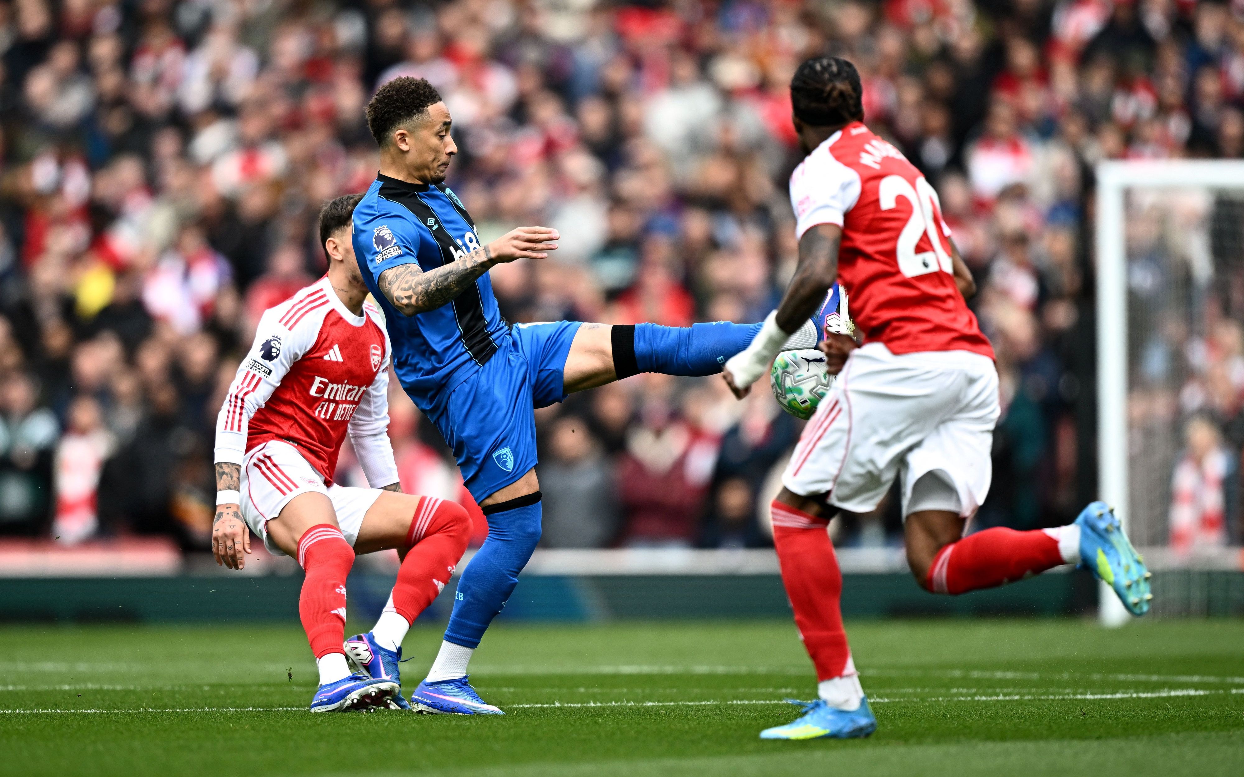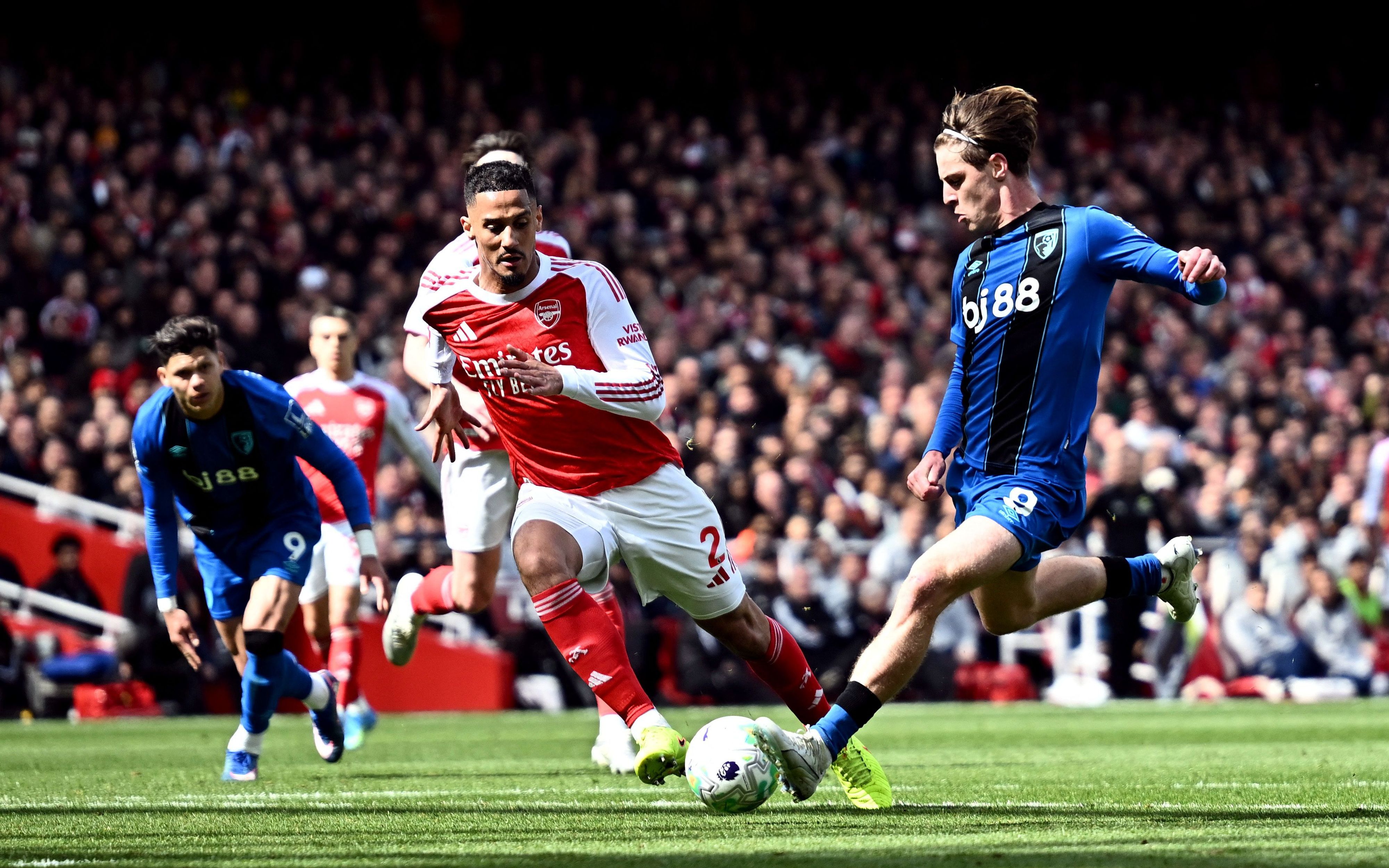 จากนั้น บอร์นมัธ หาโอกาสจบได้อีกครั้งเมื่อลูกครอสของ ไรยัน จากทางขวาเข้าเขตโทษถึง ครูปิ ได้ยิงแต่ยังโดน กาเบรียล ยืนบล็อกเอาไว้