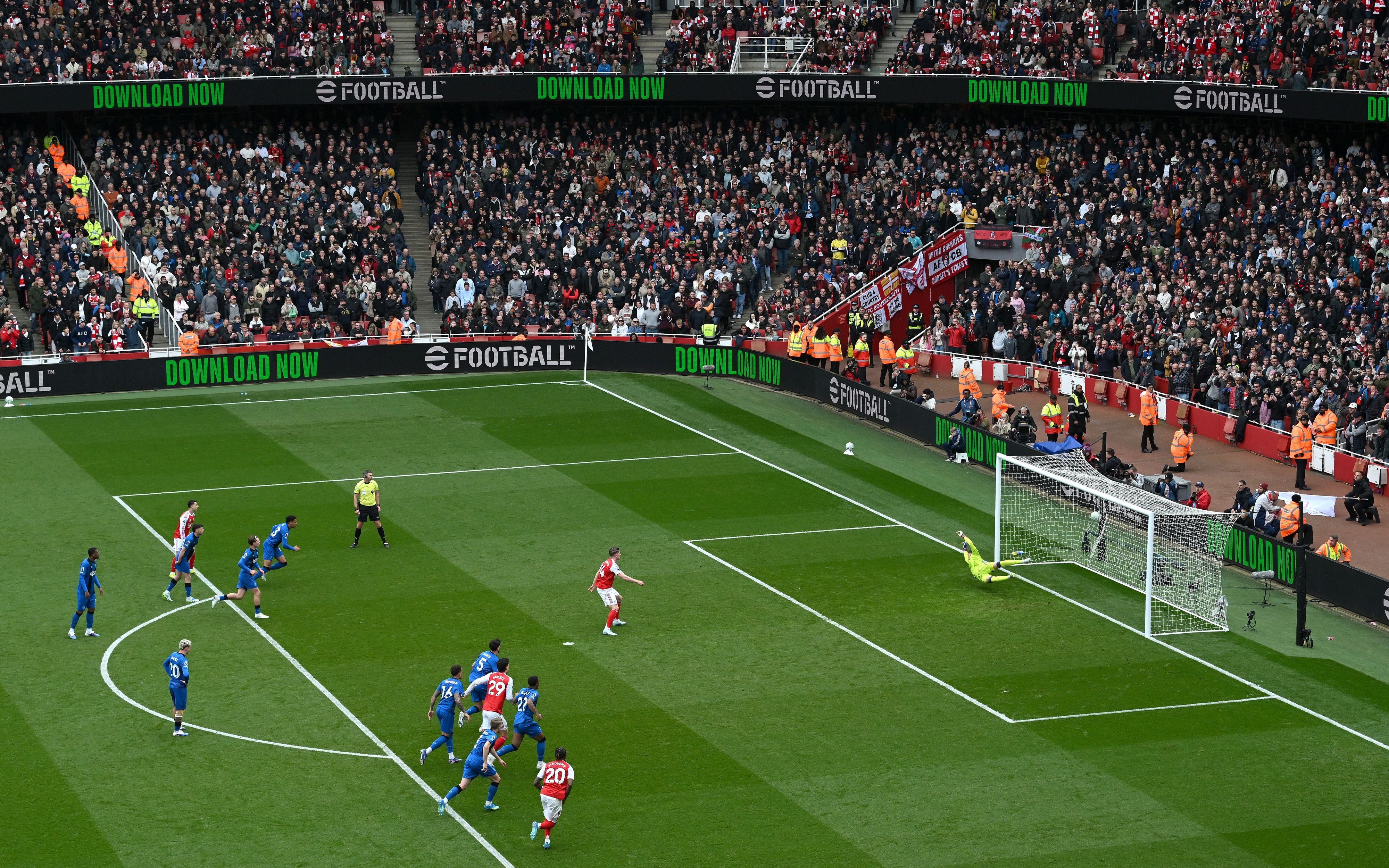 แต่แล้วเตะมุมอีกจังหวะ อาร์เซน่อล มาได้จุดโทษเข้าให้เมื่อ มาดูเอเก้ จากทางขวาเปิดมาเสาแรกบอลยังสกัดไม่ขาดแล้ว กาเบรียล หันกลับมาเจอบอลพยายามยิงแต่ไปติดแขนของ คริสตี้ ที่ยกขึ้นมากรรมการเป่าทันที