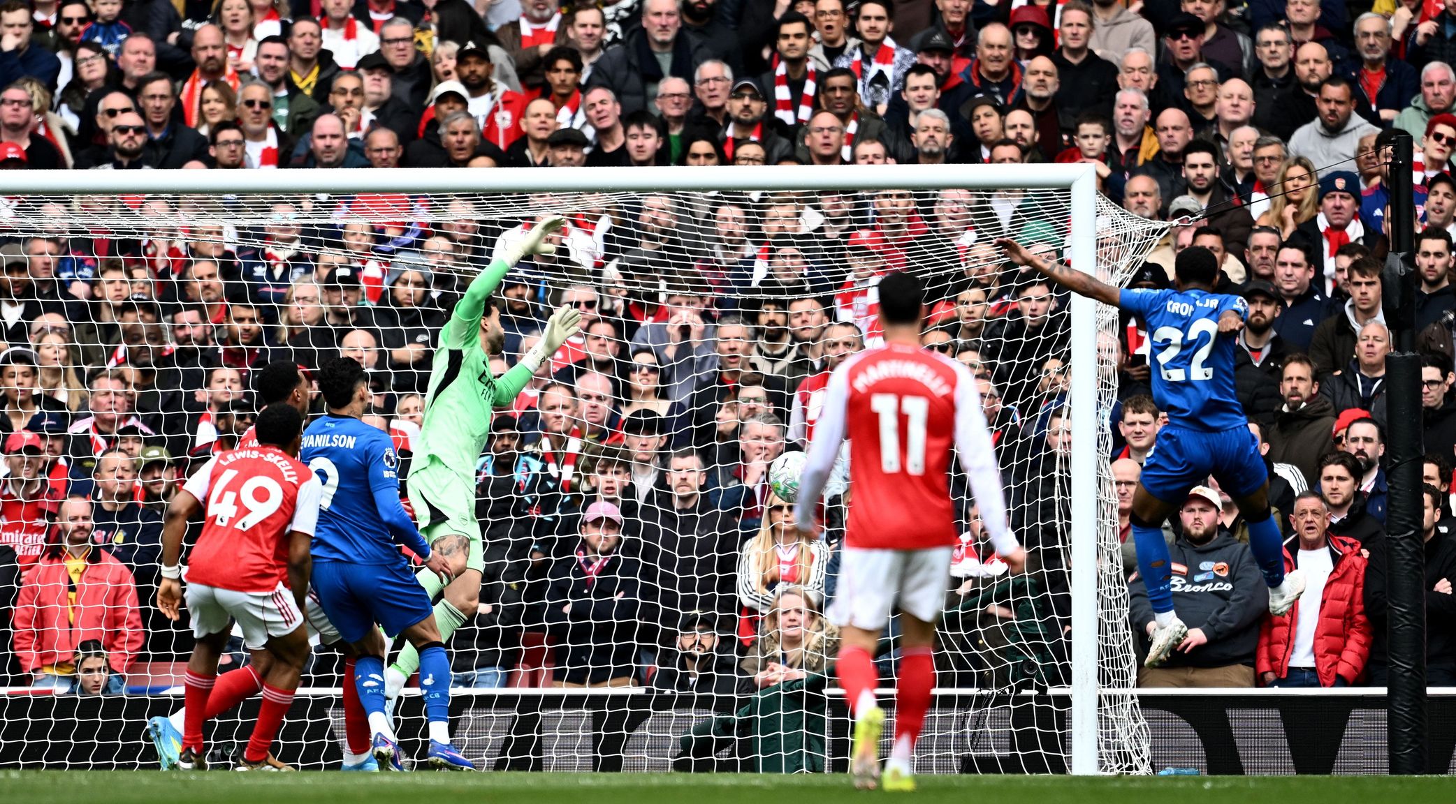 กลับมาต่อครึ่งหลัง อาร์เซน่อล เลือกที่จะเปลี่ยนตัวทีเดียว 3 คนด้วยการถอด ฮาแวร์ตซ์, มาดูเอเก้ และ มาร์ติเนลลี่ ออกเพื่อให้ เอเซ่, ทรอสซาร์ และ ดาวแมน ลงมาทำเกมรุกแทน
