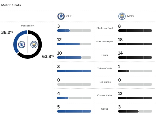 หลังปล่อยให้แมนฯซิตี้ ออกสตาร์ตเกมได้น่ากลัวกว่า เกมรุกเชลซีค่อยๆ ดีขึ้น และได้ลุ้นถึงจบสกอร์จาก พาลเมอร์ และเชา เปโดร แต่ยังไม่ดีพอจะเบิกสกอร์แรกของเกม
