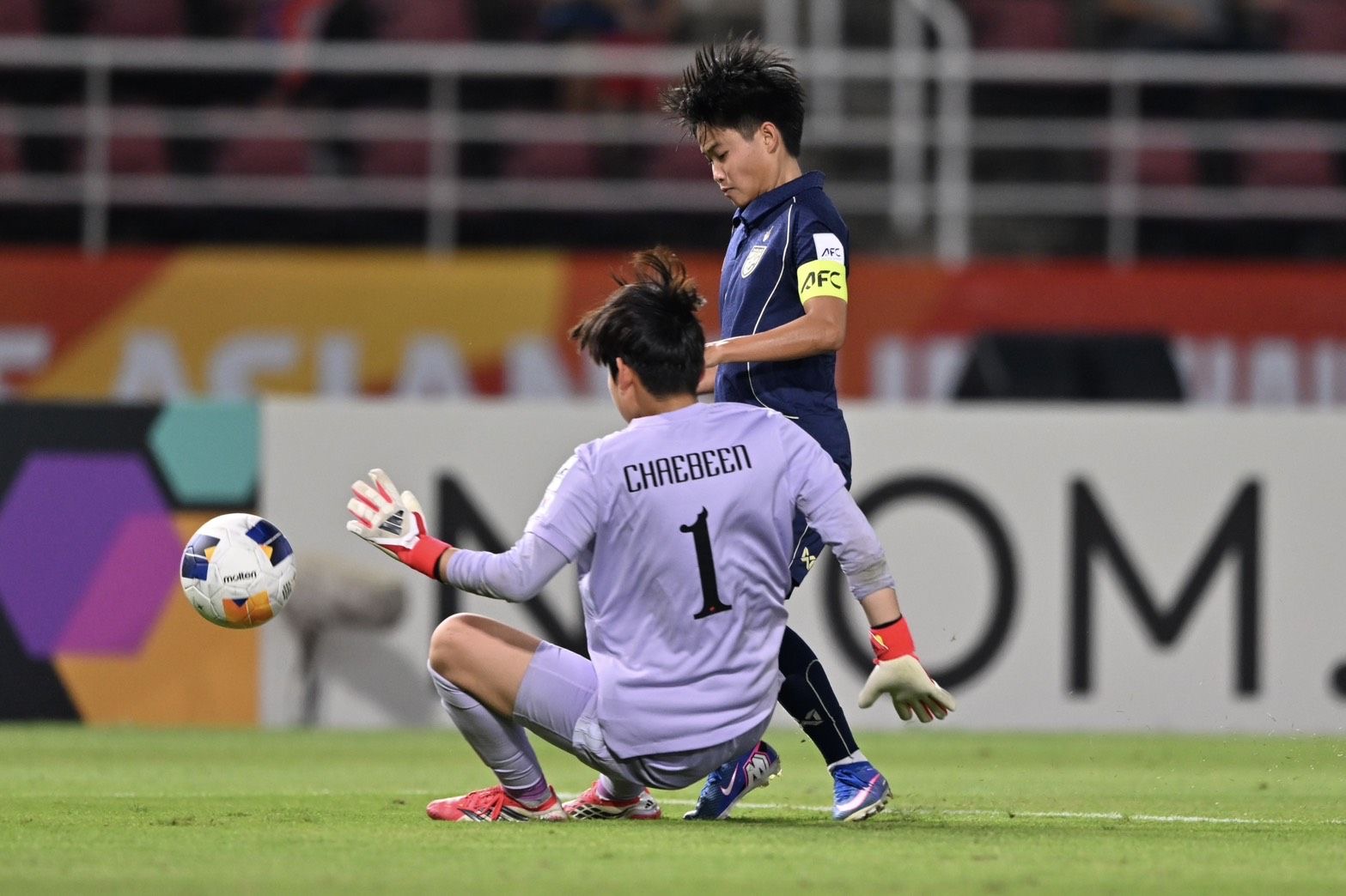 ไทยพยายามเดินหน้าบุกอย่างหนัก นาที 57 เป็น เคเดน เชาวน์พันธ์ ที่ได้เลี้ยงลุยก่อนยิงด้วยซ้ายไปเข้ามือของ คิม แช บีน อีกครั้ง