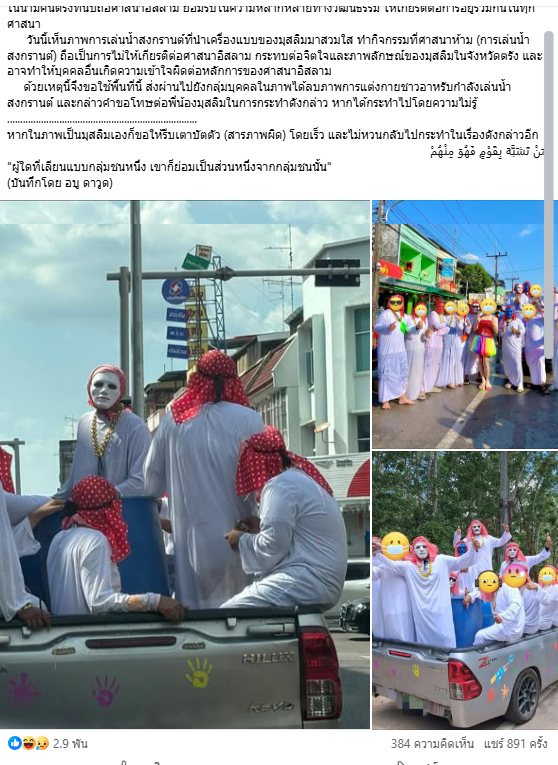 ดราม่า! คนนับถืออิสลามเดือด หลังมีคนใส่ชุดโต๊ปเล่นสงกรานต์ ชี้ไม่เหมาะสม