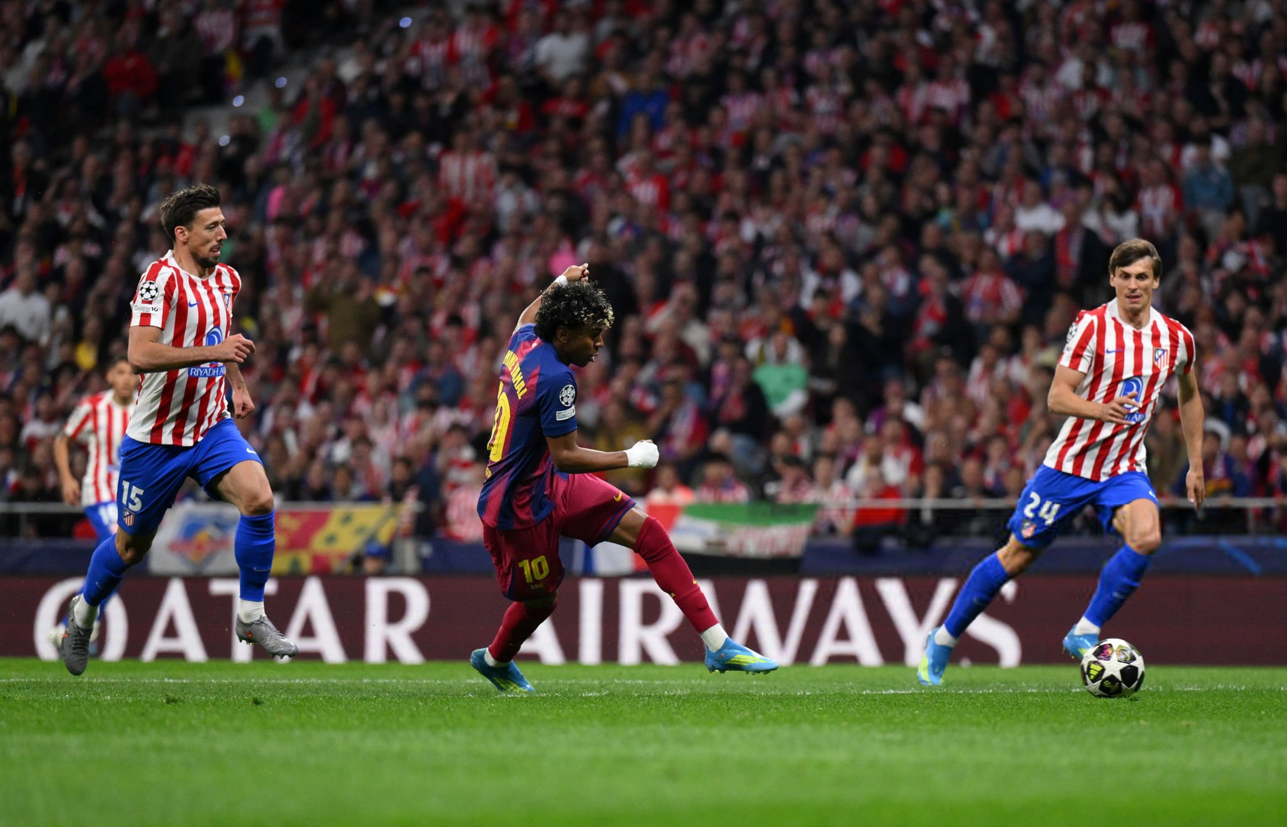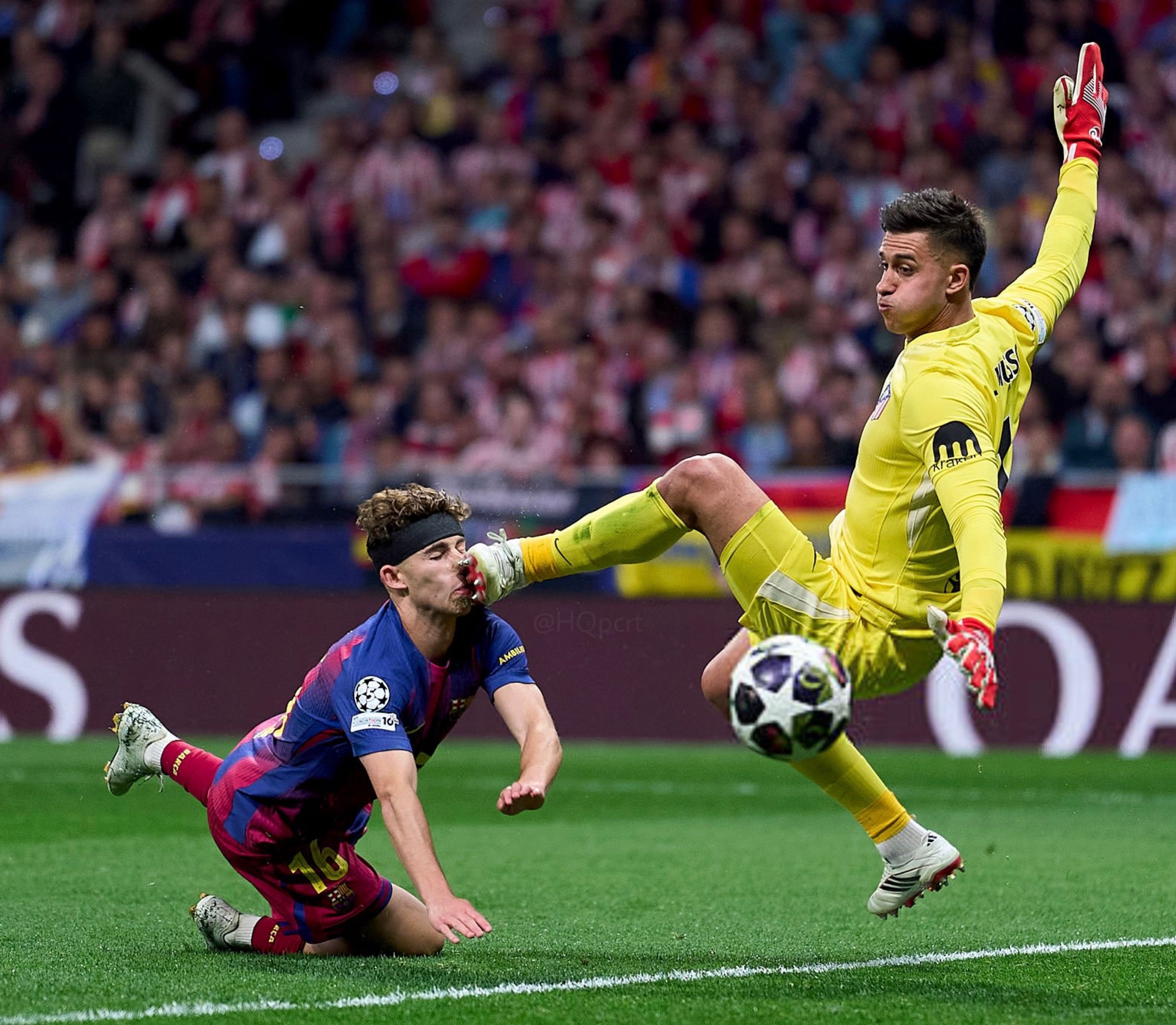 บาร์เซโลน่า มาด้วยความหวังเต็มเปี่ยมที่จะพลิกเข้ากรอบ แล้วโมเมนตัมก็เหมือนจะเข้าทางพวกเขาเมื่อมารัวยิงสองประตูจาก ลามีน ยามาล (น.4) และ เฟร์ราน ตอร์เรส (น.24) แต่ทาง แอตเลติโก้ มาดริด ยังคงความเคี่ยว ได้ อเดโมล่า ลุคแมน ยิงตีไข่แตก (น.31) ช่วยกู้สถานการณ์ไว้ได้ ครึ่งหลังทีมเยือนบุกหนักแต่ก็ยังกระซวกตาข่ายเพิ่มไม่ได้ แล้วดันโชคร้ายเหลือ 10 คนจากการที่ เอริค การ์เซีย โดนใบแดง (น.79) สุดท้ายแม้ บาร์ซ่า จะบุกมาชนะได้ 2-1 แต่รวมผลสองนัดเป็น “ตราหมี” ที่เบียดเข้ารอบต่อไปด้วยสกอร์รวม 3-2