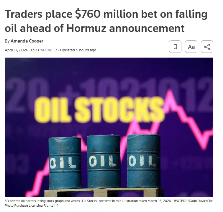 https://www.reuters.com/sustainability/boards-policy-regulation/traders-place-760-million-bet-falling-oil-ahead-hormuz-announcement-2026-04-17/