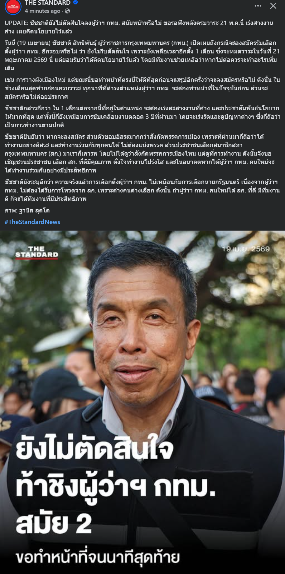 [RE: ชัชชาติยังไม่ตัดสินใจลงผู้ว่าฯ กทม. สมัยหน้าหรือไม่ ขอรอฟังหลังครบวาระ 21 พ.ค.นี้]