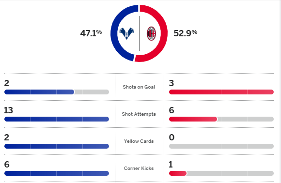 มิลาน เข้าทำเร็วสร้างโอกาสแรก พูลิซิช ตอกส้นจ่าย เลเอา รับช่วงต่อไหลให้ ราบิโอต์ ยิงที่ฝั่งซ้ายเขตโทษเข้ามือ มอนติโป