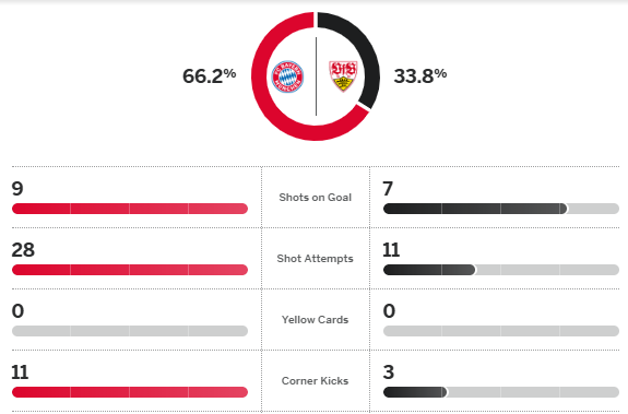 บาเยิร์น ผ่อนเครื่องลงไป สตุ๊ตการ์ท บุกกดดันบอลถูกสกัดเข้าทาง อันเดรส วอลเลย์สวนติดไซด์ก้อยเสียบเสา ตีตื้น 4-2