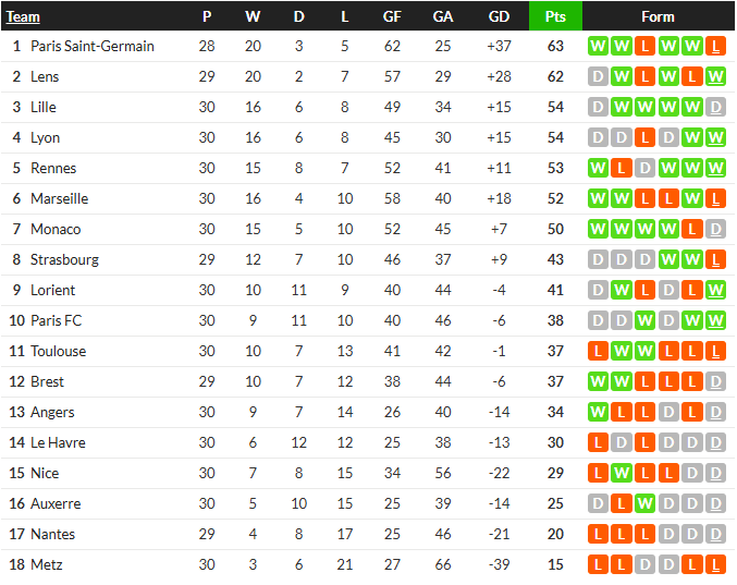 สรุปผล ลีกเอิง อาทิตย์ที่ 19 เมษายน 2026