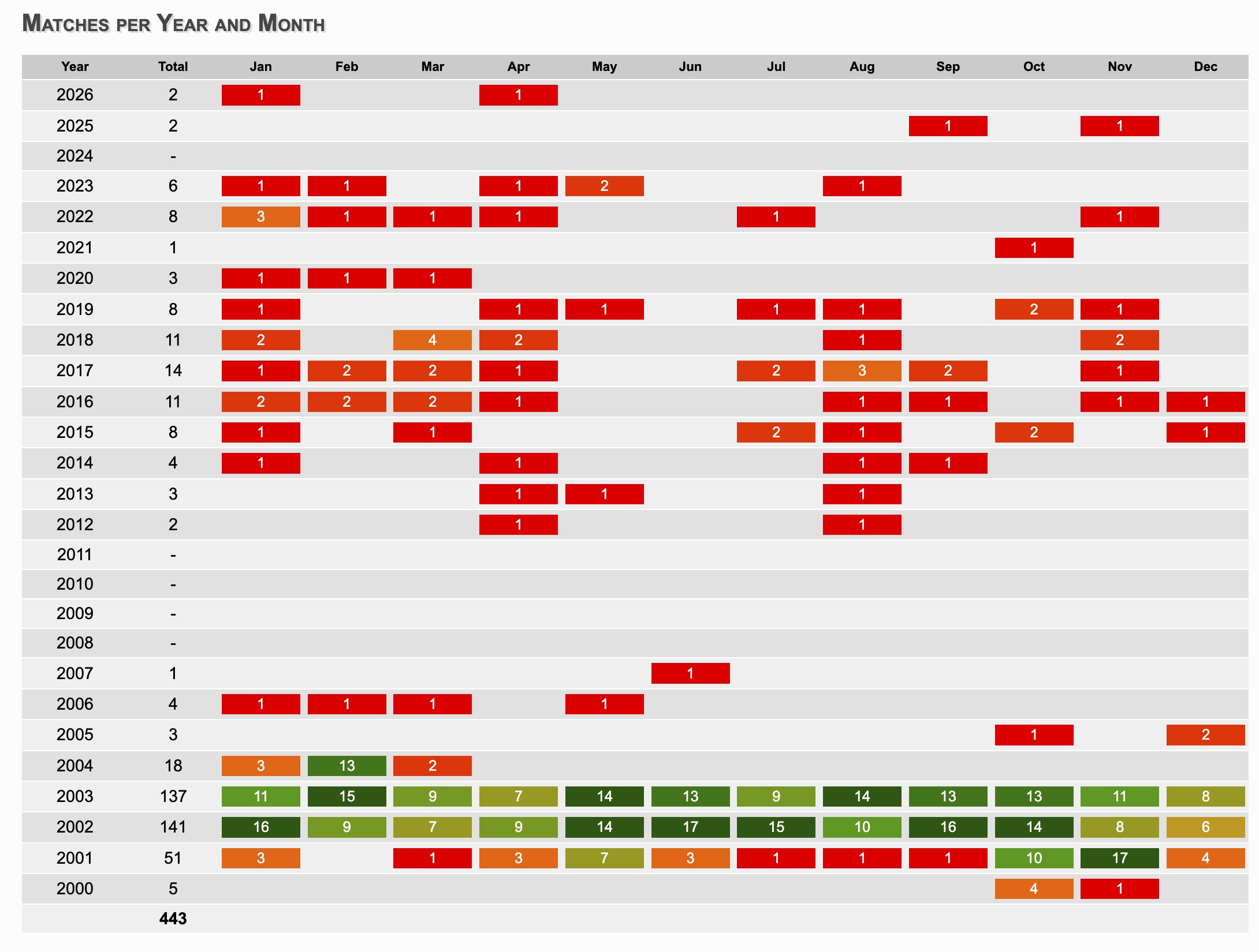 Total number of matches: 443