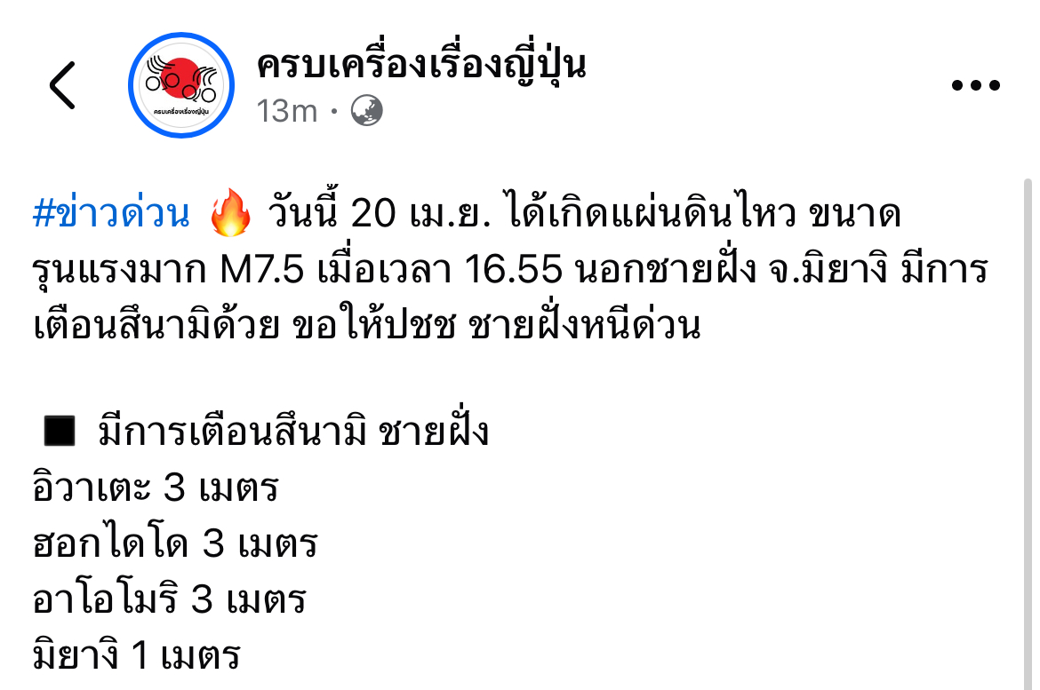 BREAKING: เกิดเหตุแผ่นดินไหวญี่ปุ่น 7.4